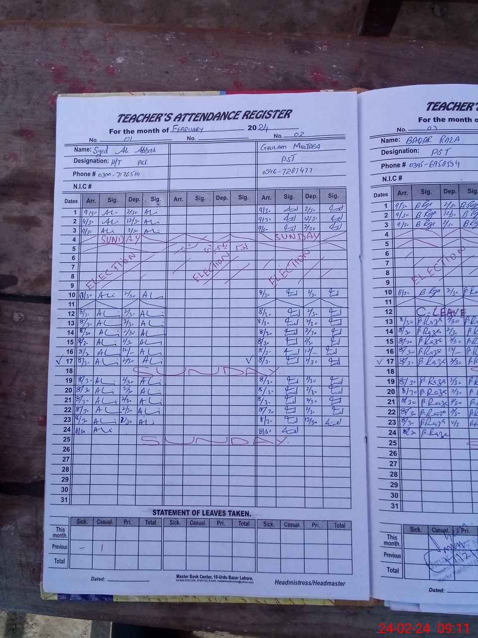 | Name: Sy**** Al**** Ab**** Designation: (School Headmaster's/Headmistress's) PST Phone/Cell Number: 03**** |