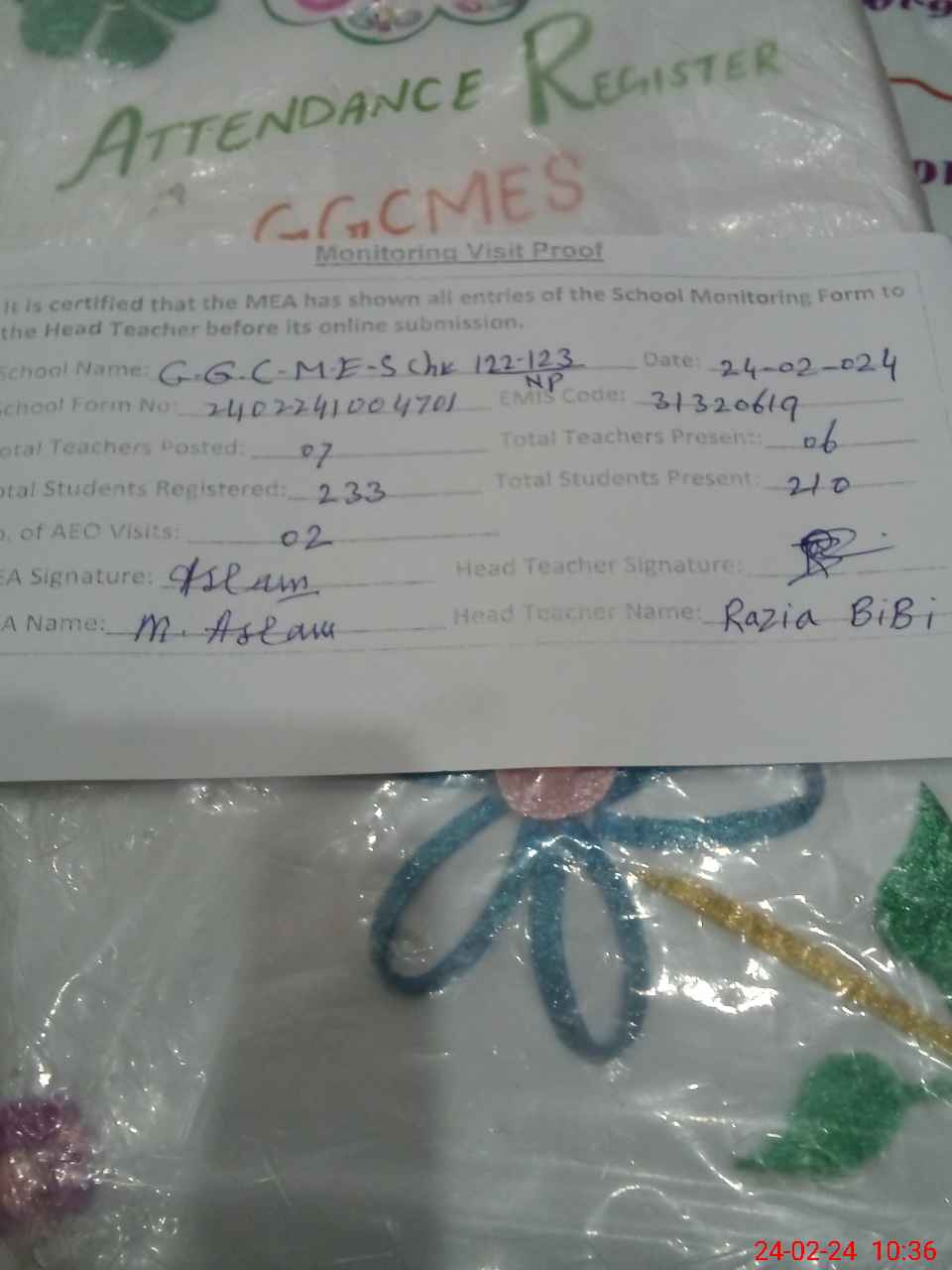 | EMIS Code: 31320619 | Name of School: GGCMES CHAK 122-123/NP | |||
