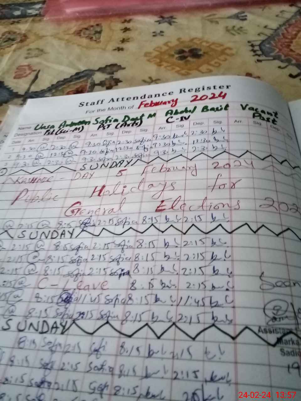 | CNIC | Full Name | Designation | R/C | Absence During Last Calender Month |