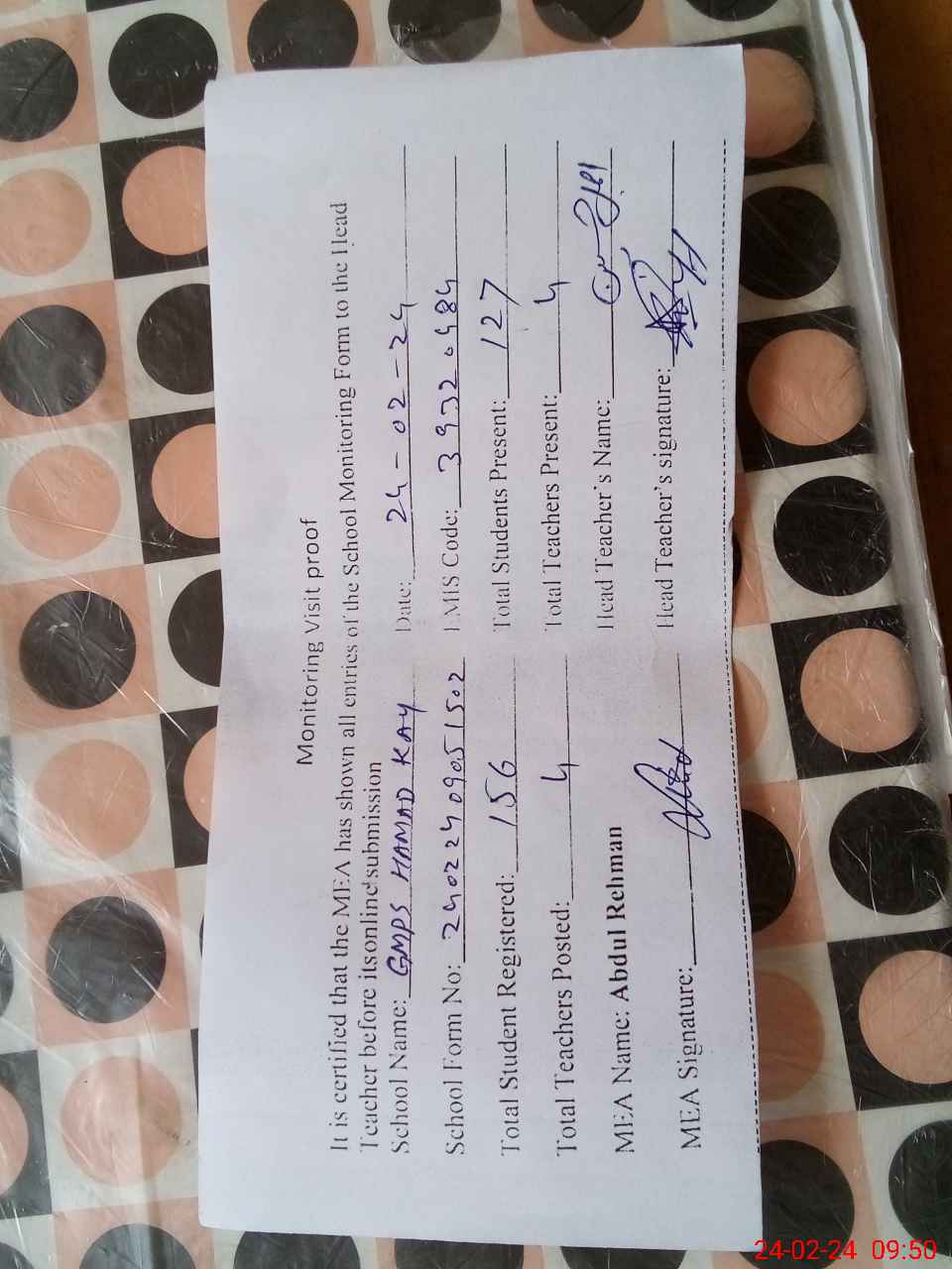 | EMIS Code: 39320484 | Name of School: GMPS HAMAND KAY | |||