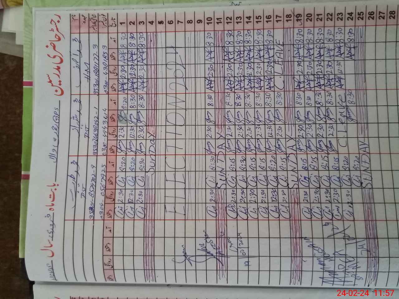 | CNIC | Full Name | Designation | R/C | Absence During Last Calender Month |