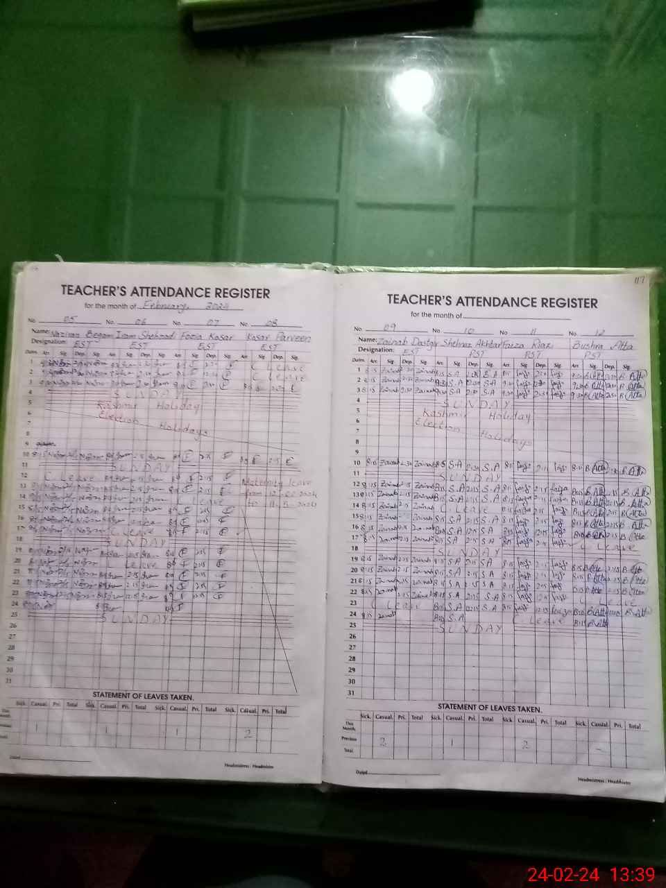 | Leave | Duty | Absent | Maternity | Medical | Ex- Pak |