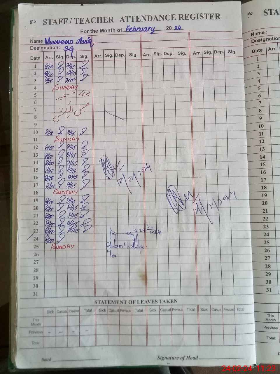 | Leave | Duty | Absent | Maternity | Medical | Ex- Pak |