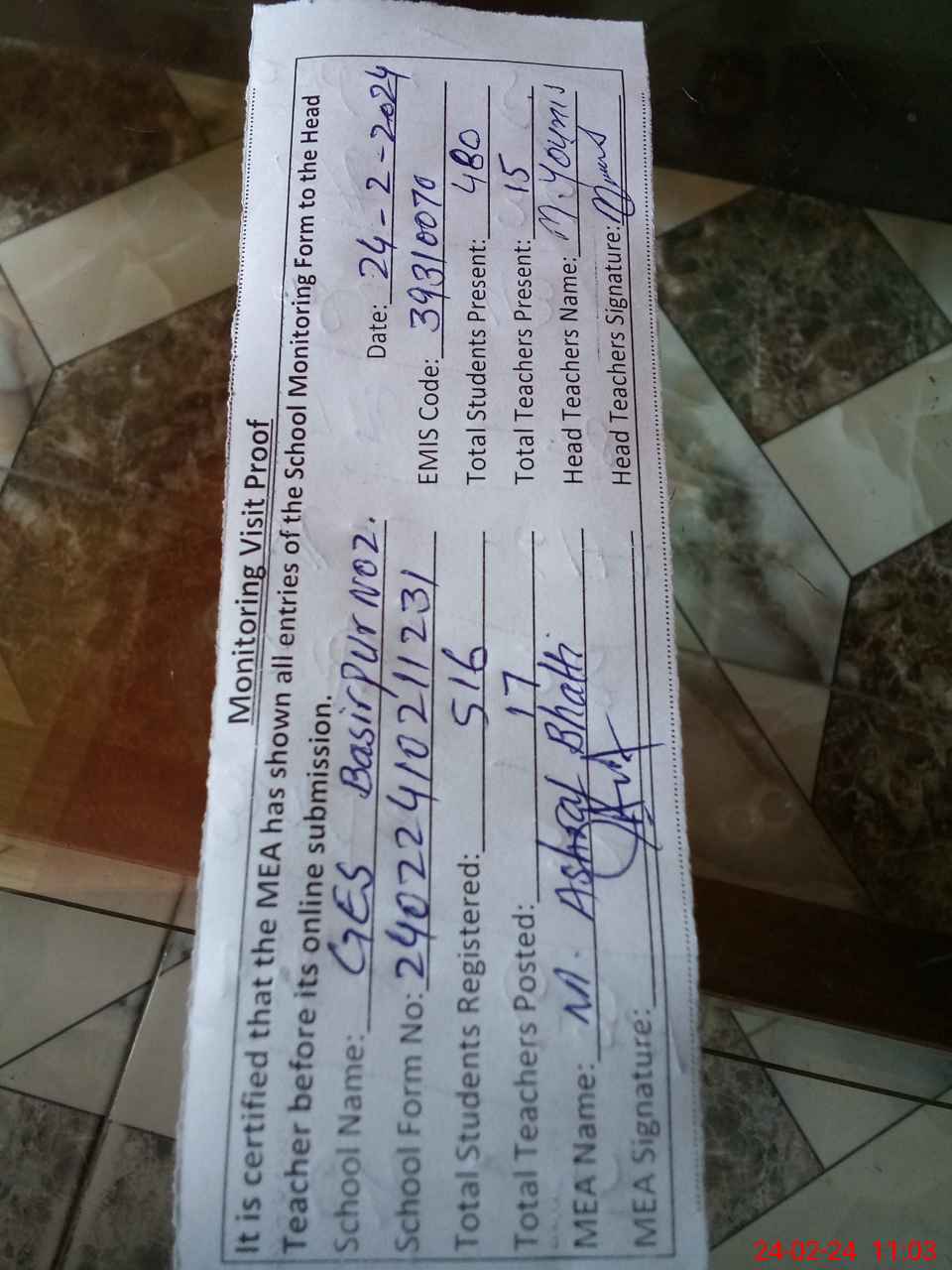 | EMIS Code: 39310070 | Name of School: GES BASIR PUR NO. 2 | |||