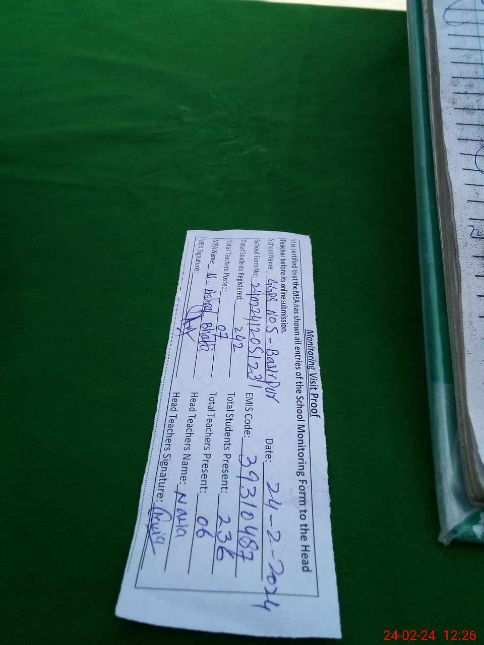 | EMIS Code: 39310487 | Name of School: GGPS NO. 5 BASIR PUR | |||