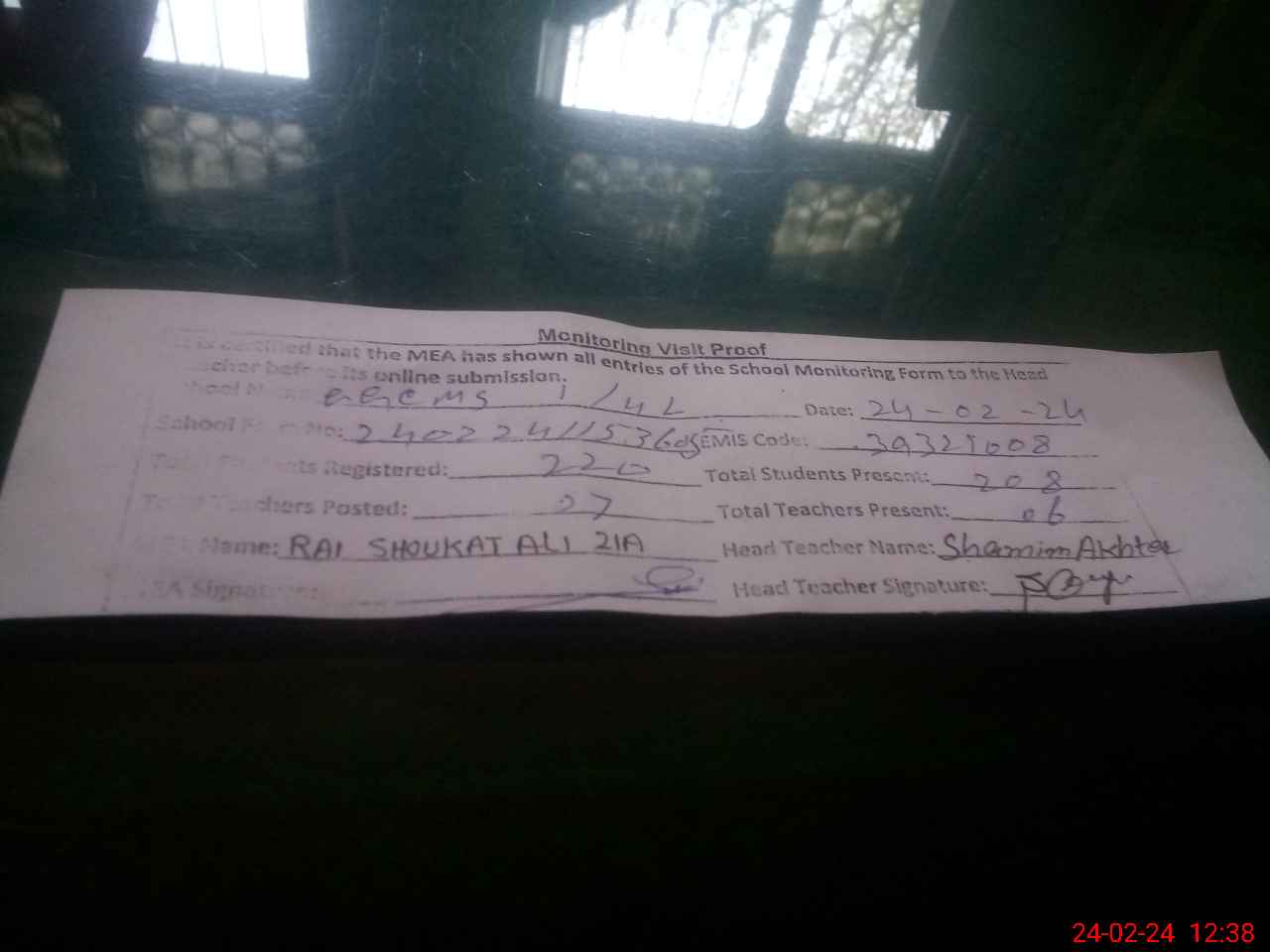 | Monitoring Date: 24-02-2024 | Start Time: 24-02-2024 11:53 AM | End Time: 24-02-2024 12:38 PM | Name of MEA: SH**** AL**** ZI**** (R**** | |