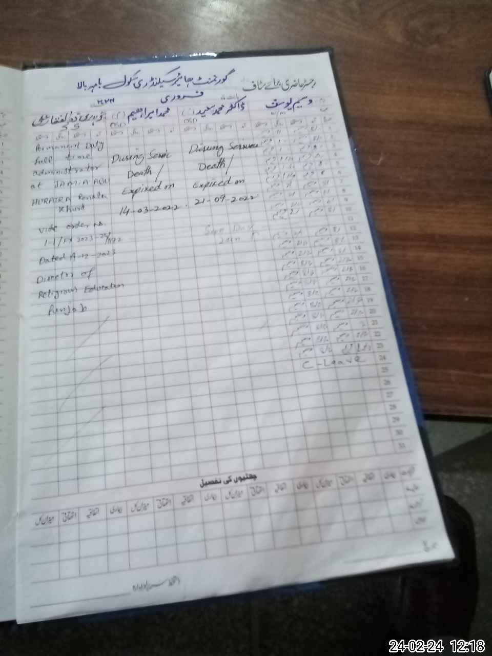 | CNIC | Full Name | Designation | R/C | Absence During Last Calender Month |