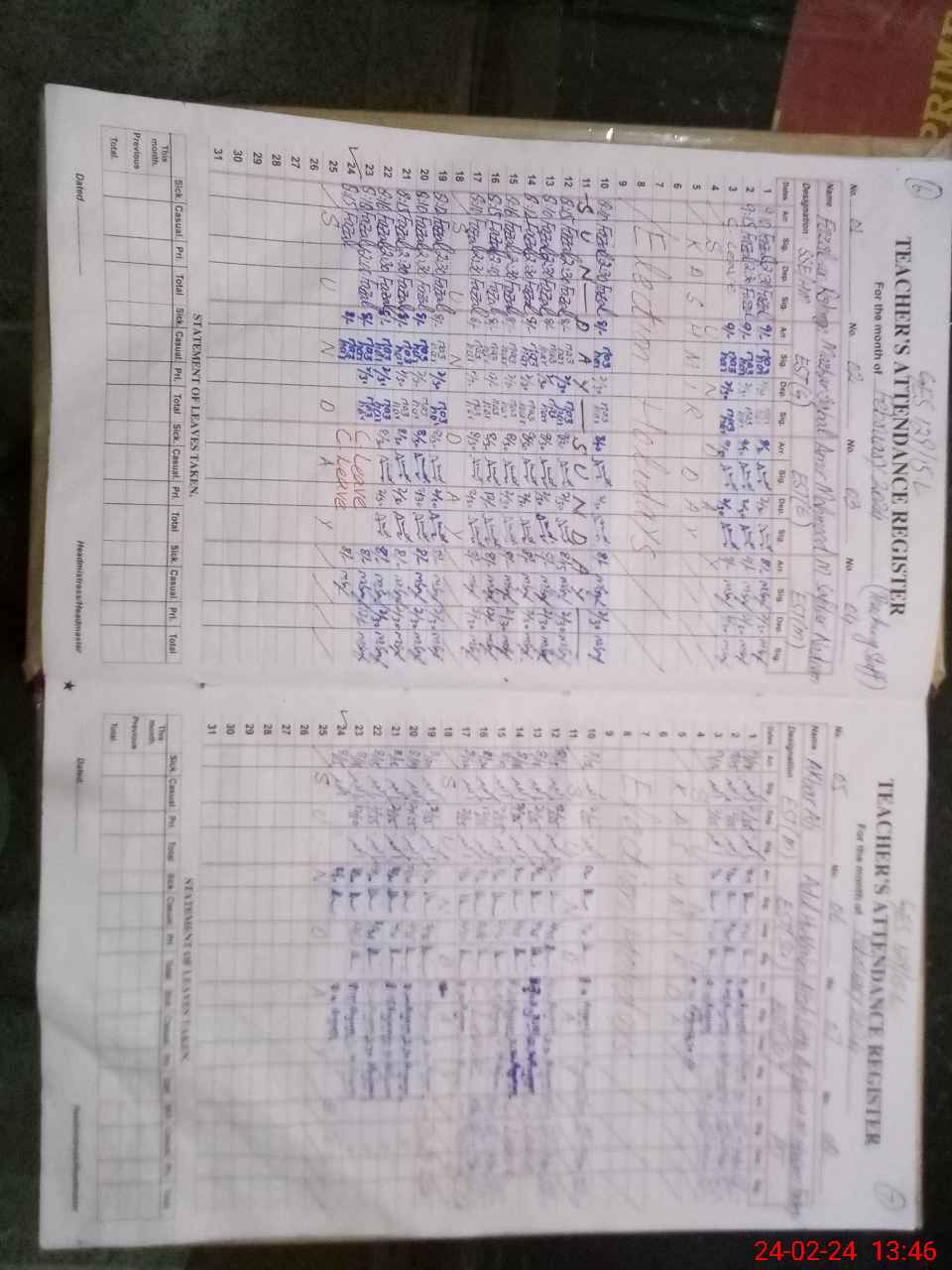 | Leave | Duty | Absent | Maternity | Medical | Ex- Pak |