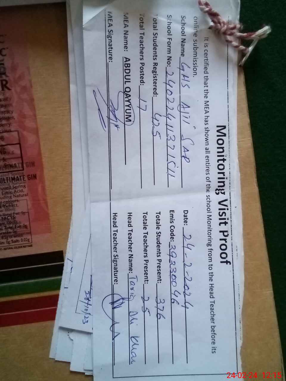 | EMIS Code: 39330046 | Name of School: GHS AJIT SAR | |||
