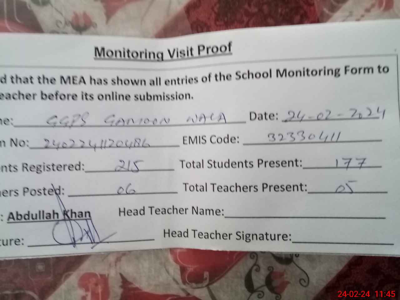 | EMIS Code: 32330411 | Name of School: GGPS GAMOON WALA | |||