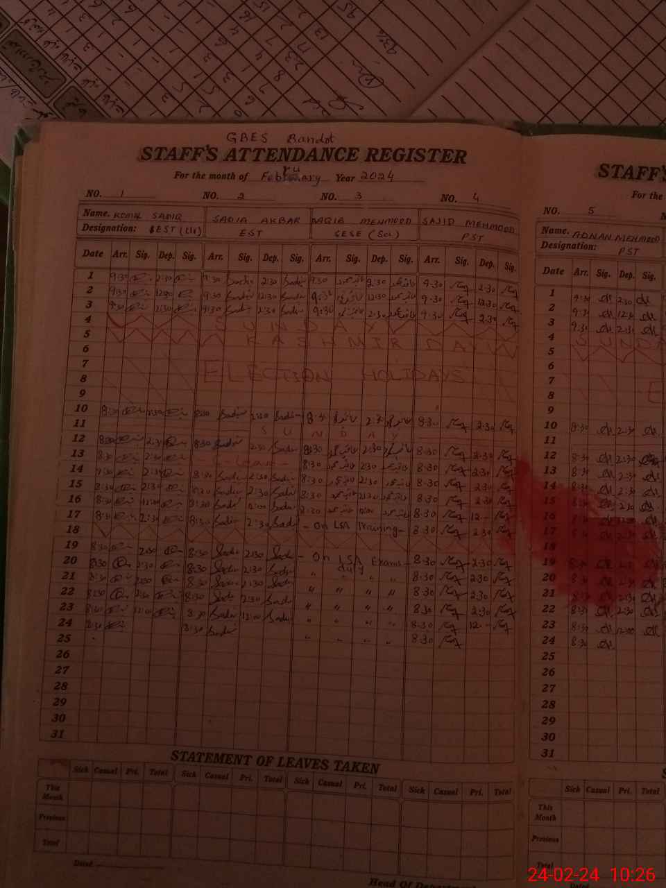 | Leave | Duty | Absent | Maternity | Medical | Ex- Pak |