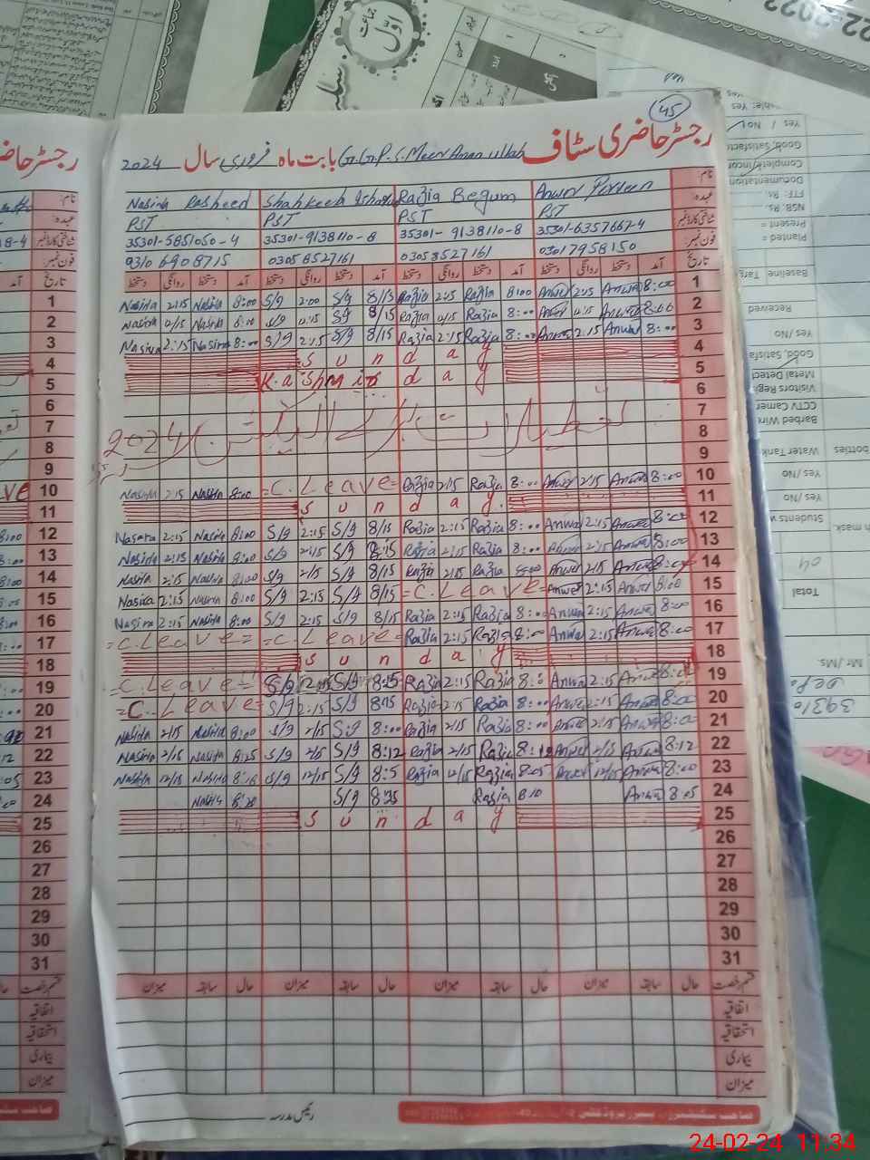 | CNIC | Full Name | Designation | R/C | Absence During Last Calender Month |