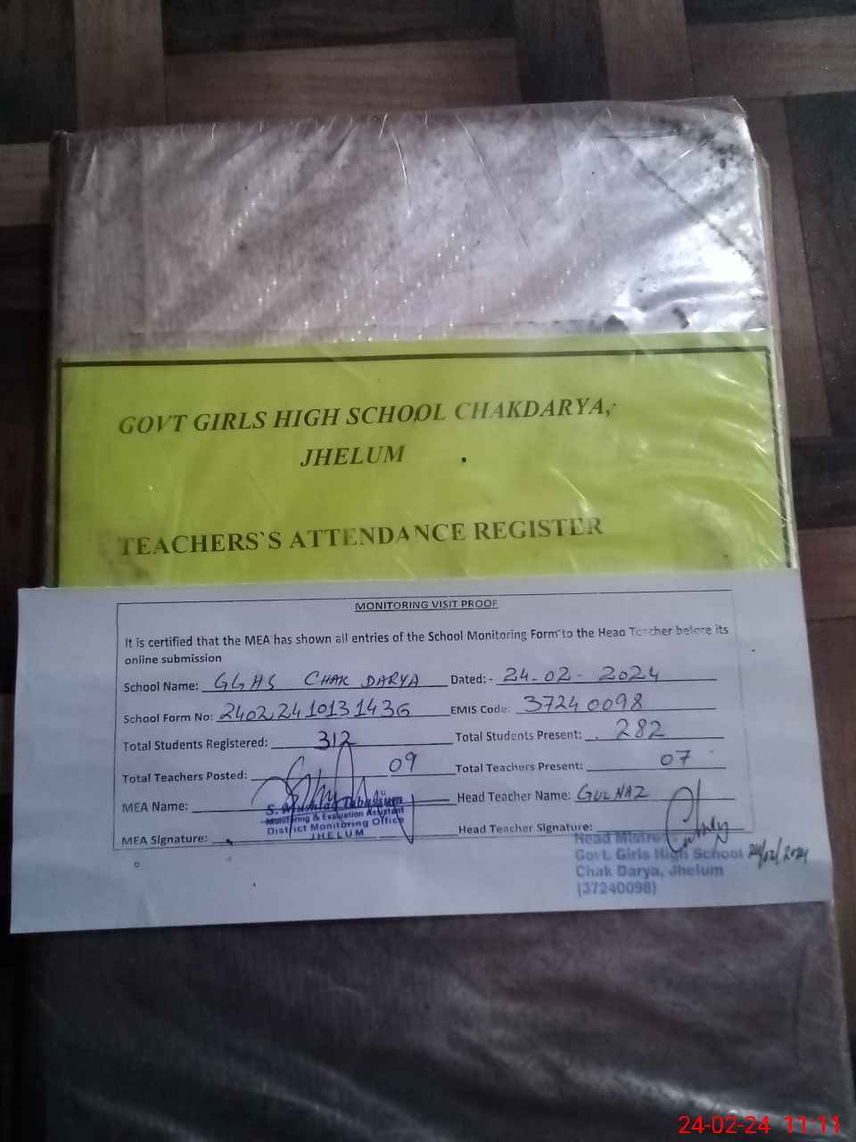 | EMIS Code: 37240098 | Name of School: GGHS CHAK DARYA | |||
