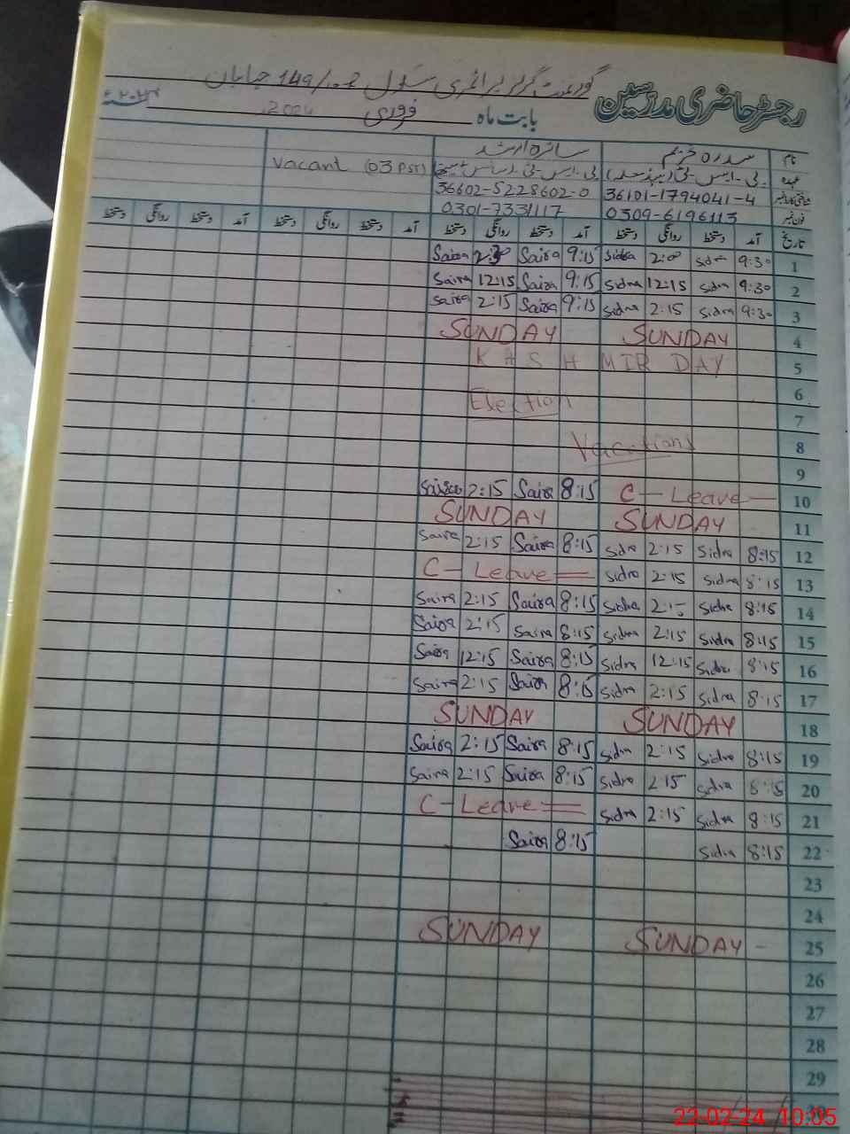 | Name: Qa**** Unni**** Sa**** Designation: (School Headmaster's/Headmistress's) PST Phone/Cell Number: 03**** |