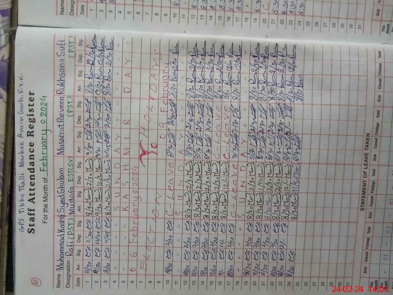 | CNIC | Full Name | Designation | R/C | Absence During Last Calender Month |