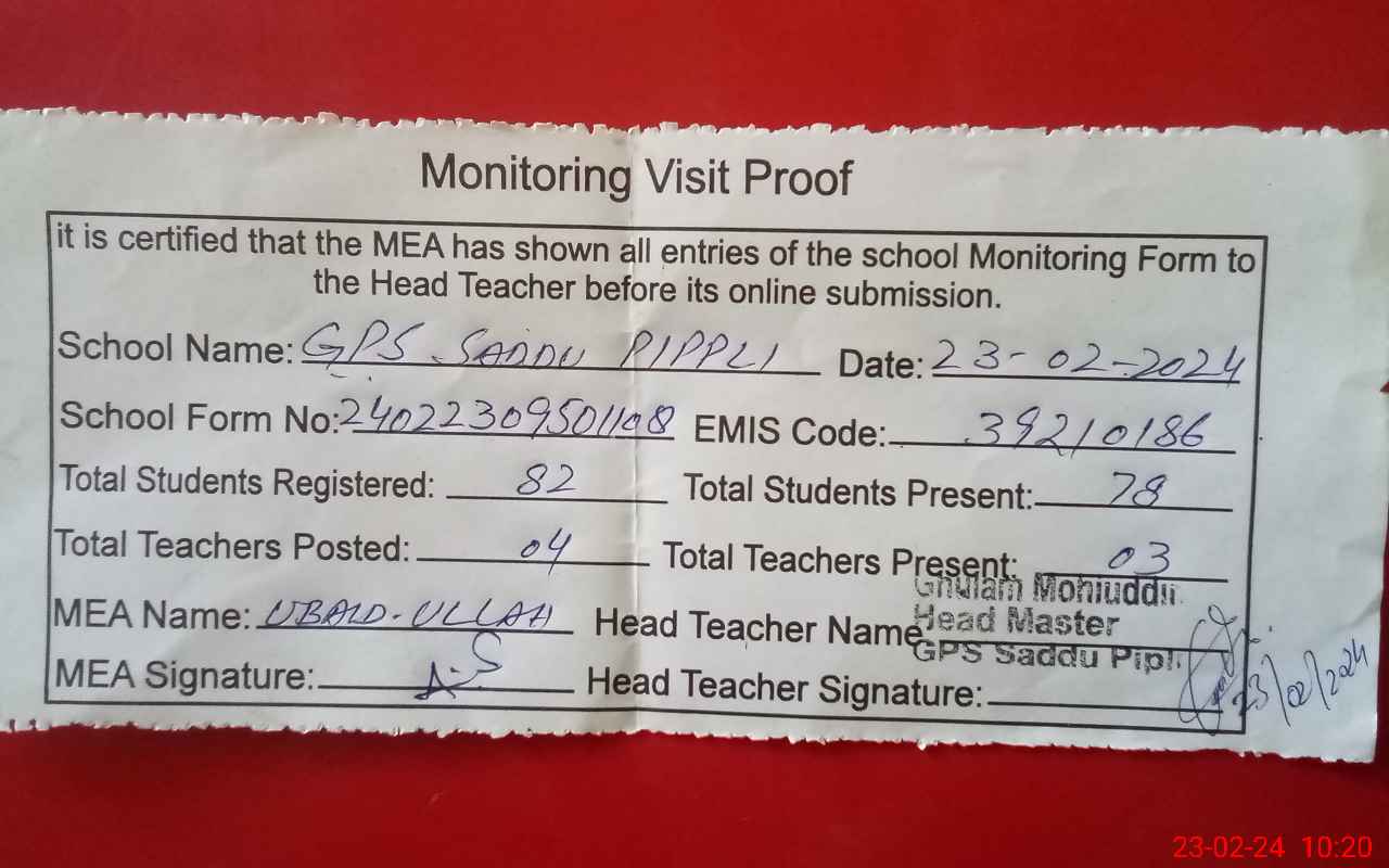 | EMIS Code: 39210186 | Name of School: GPS SADDU PIPLI PO PAKPATTAN | |||