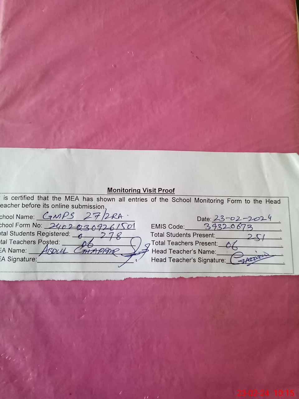 | EMIS Code: 39320673 | Name of School: GMPS 27/2-RA | |||