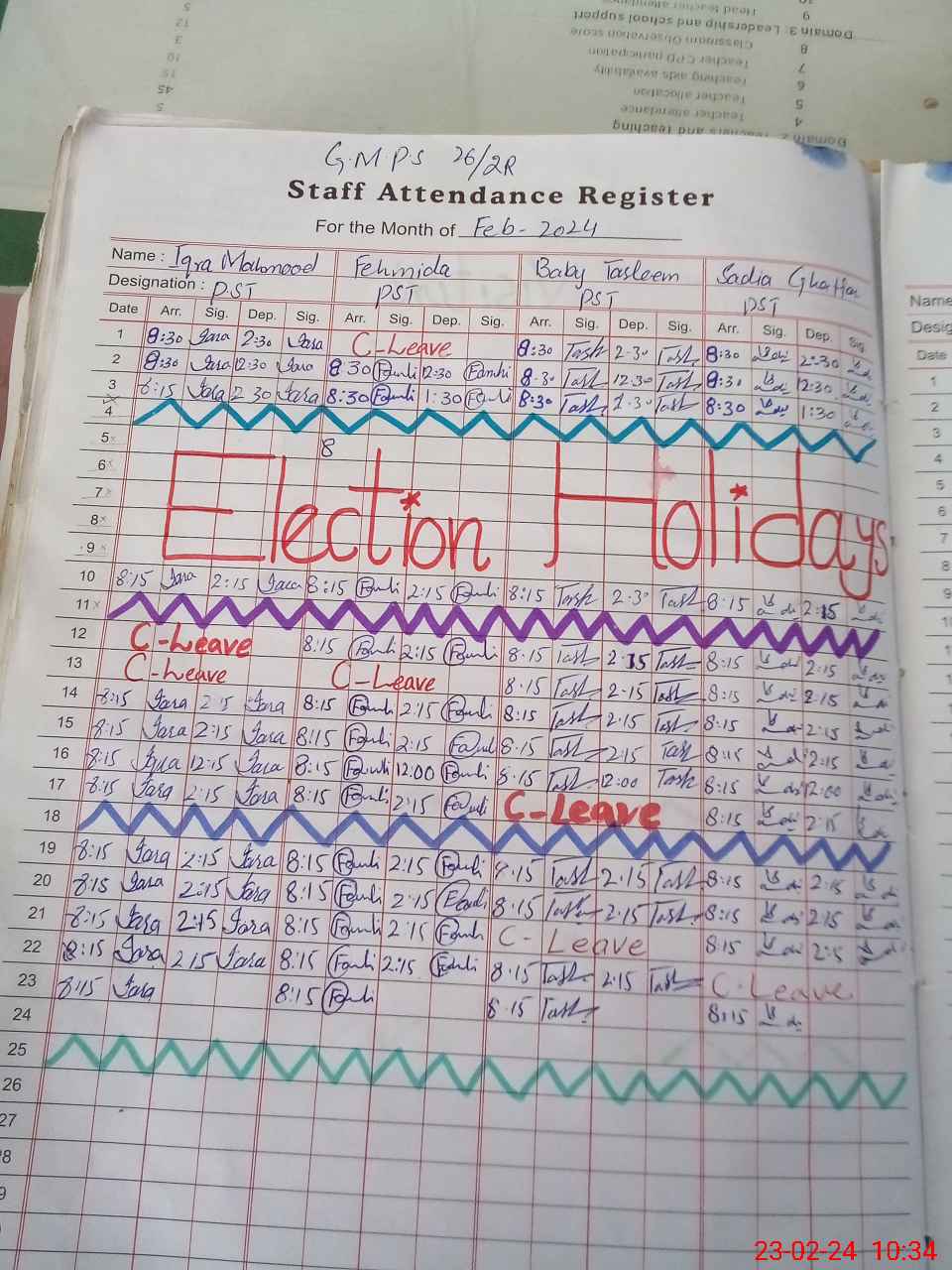 | Leave | Duty | Absent | Maternity | Medical | Ex- Pak |