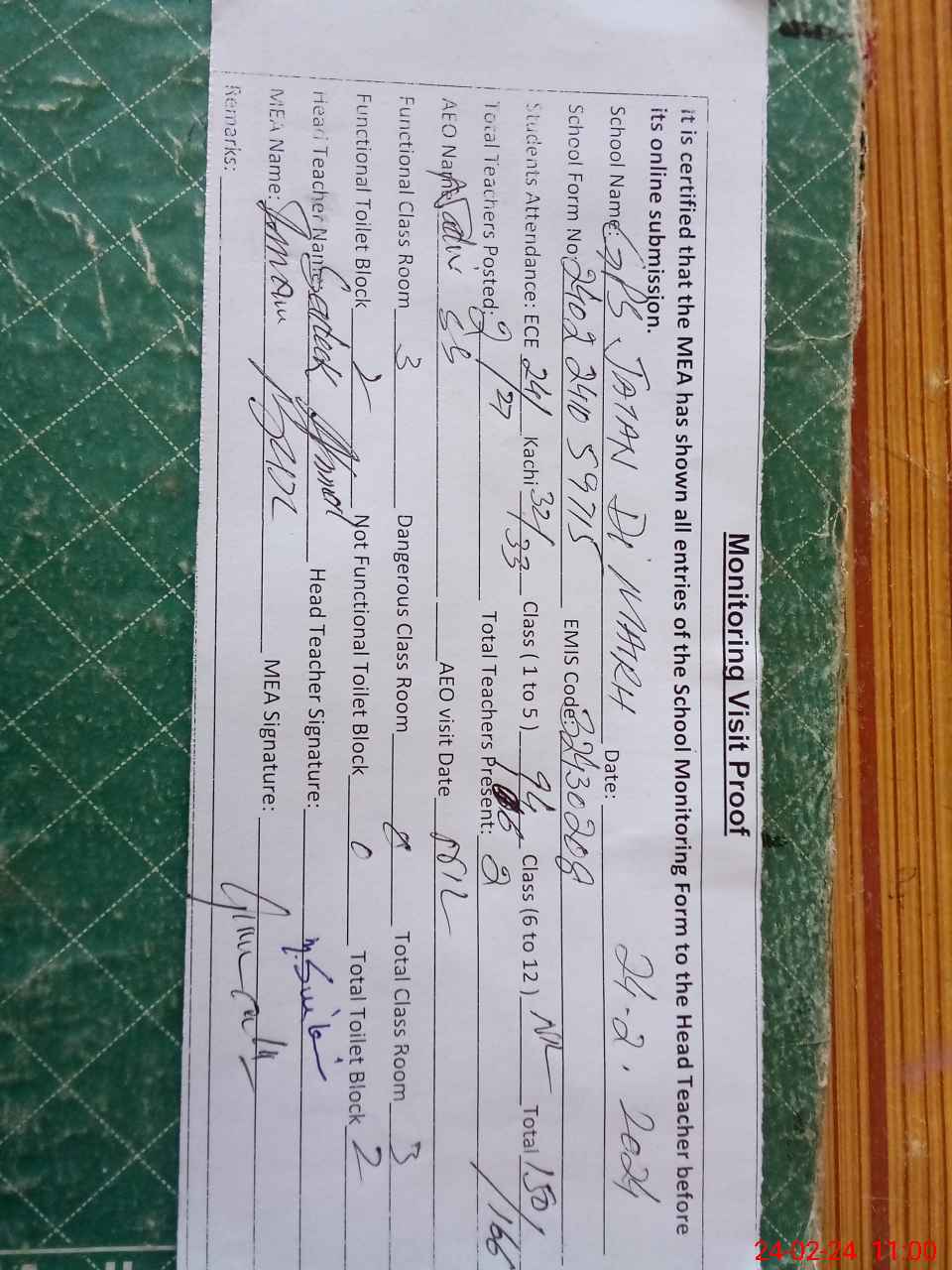 | EMIS Code: 32430208 | Name of School: GPS JATAN DI MAIRH | |||