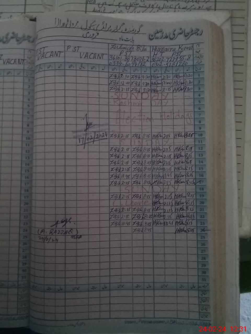 | Name: Hu**** Ki**** Designation: (School Headmaster's/Headmistress's) Pst Phone/Cell Number: 03**** |