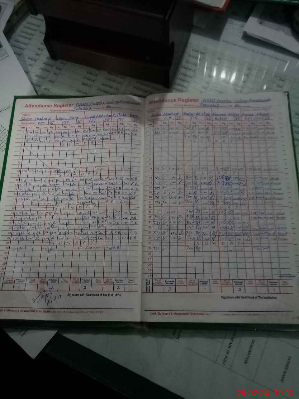 | Leave | Duty | Absent | Maternity | Medical | Ex- Pak |