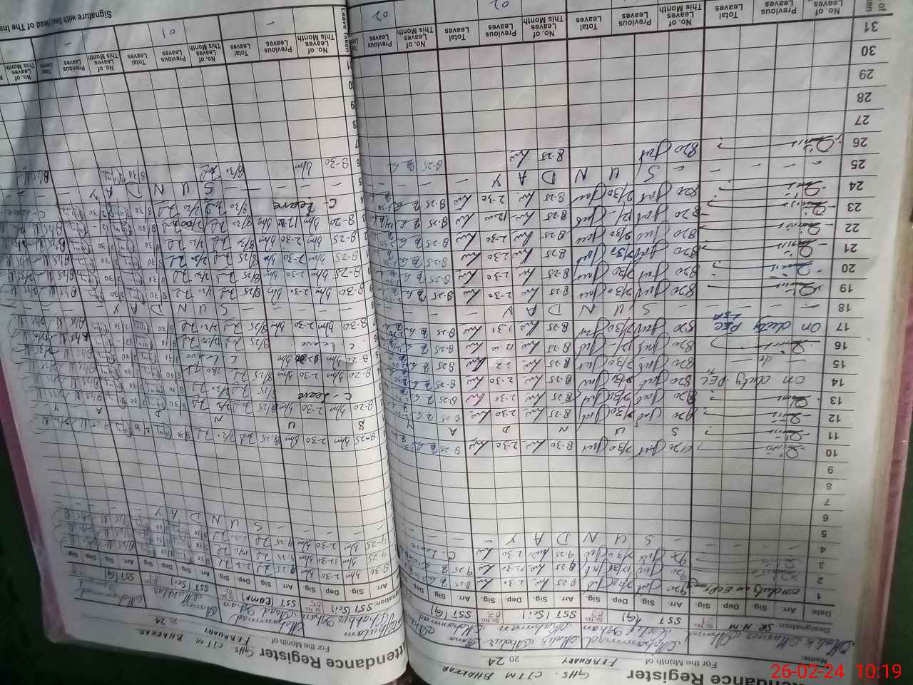 | Leave | Duty | Absent | Maternity | Medical | Ex- Pak |
