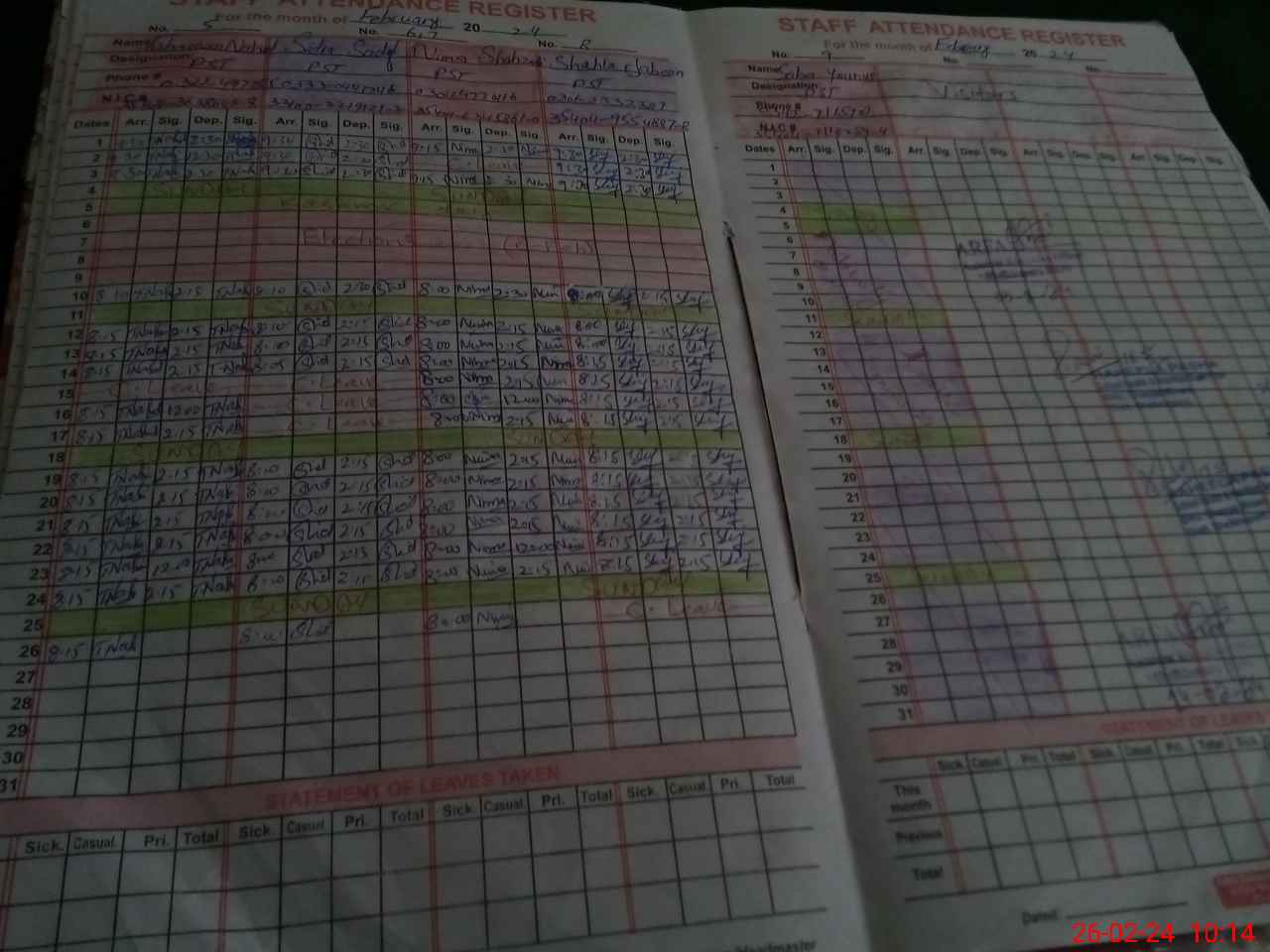 | Leave | Duty | Absent | Maternity | Medical | Ex- Pak |