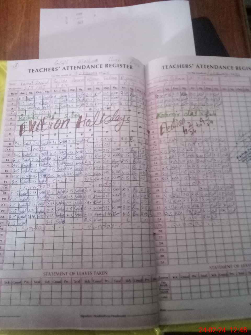 | Leave | Duty | Absent | Maternity | Medical | Ex- Pak |