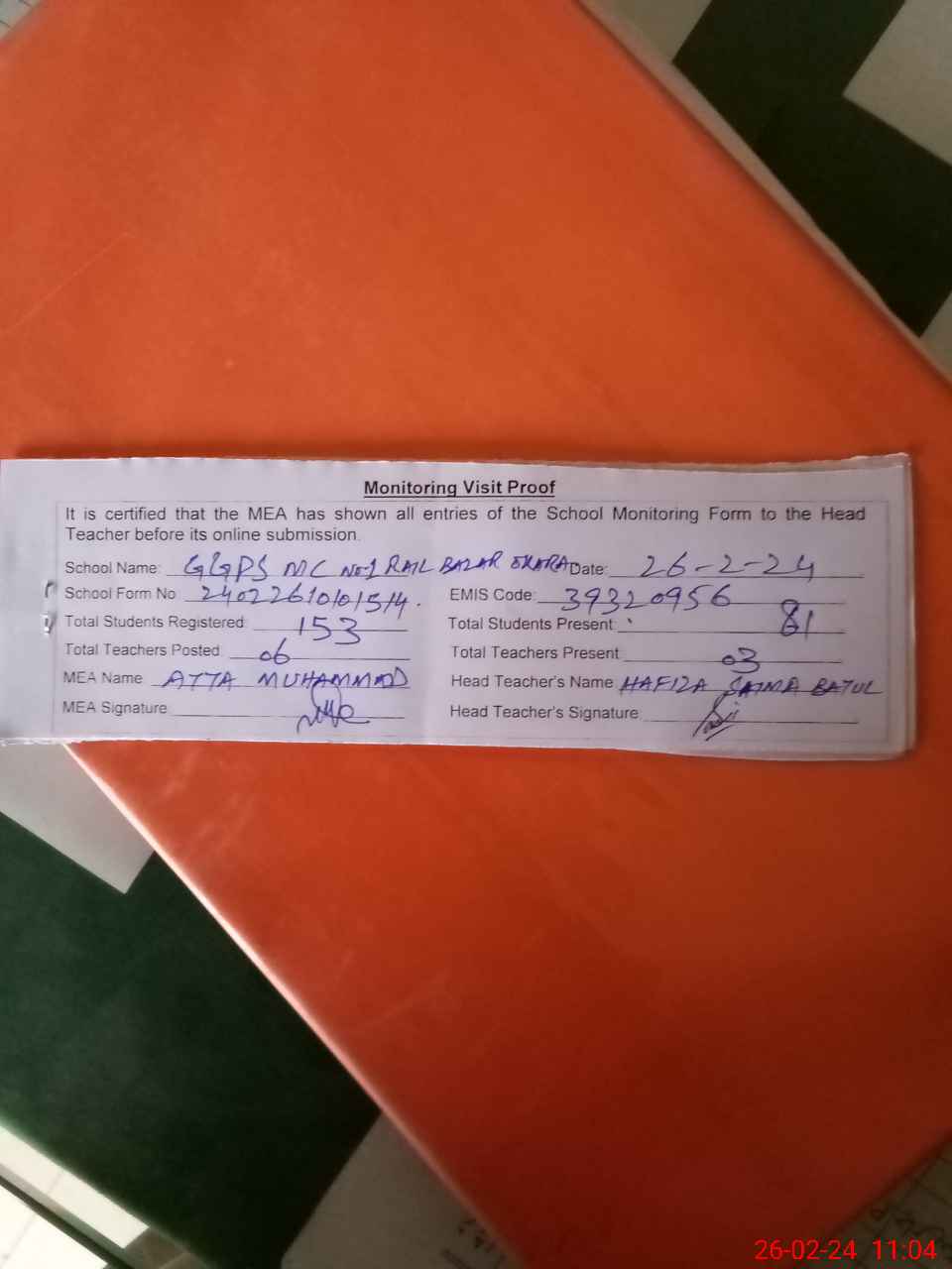 | EMIS Code: 39320956 | Name of School: GGPS MC NO. 1 RAIL BAZAR | |||