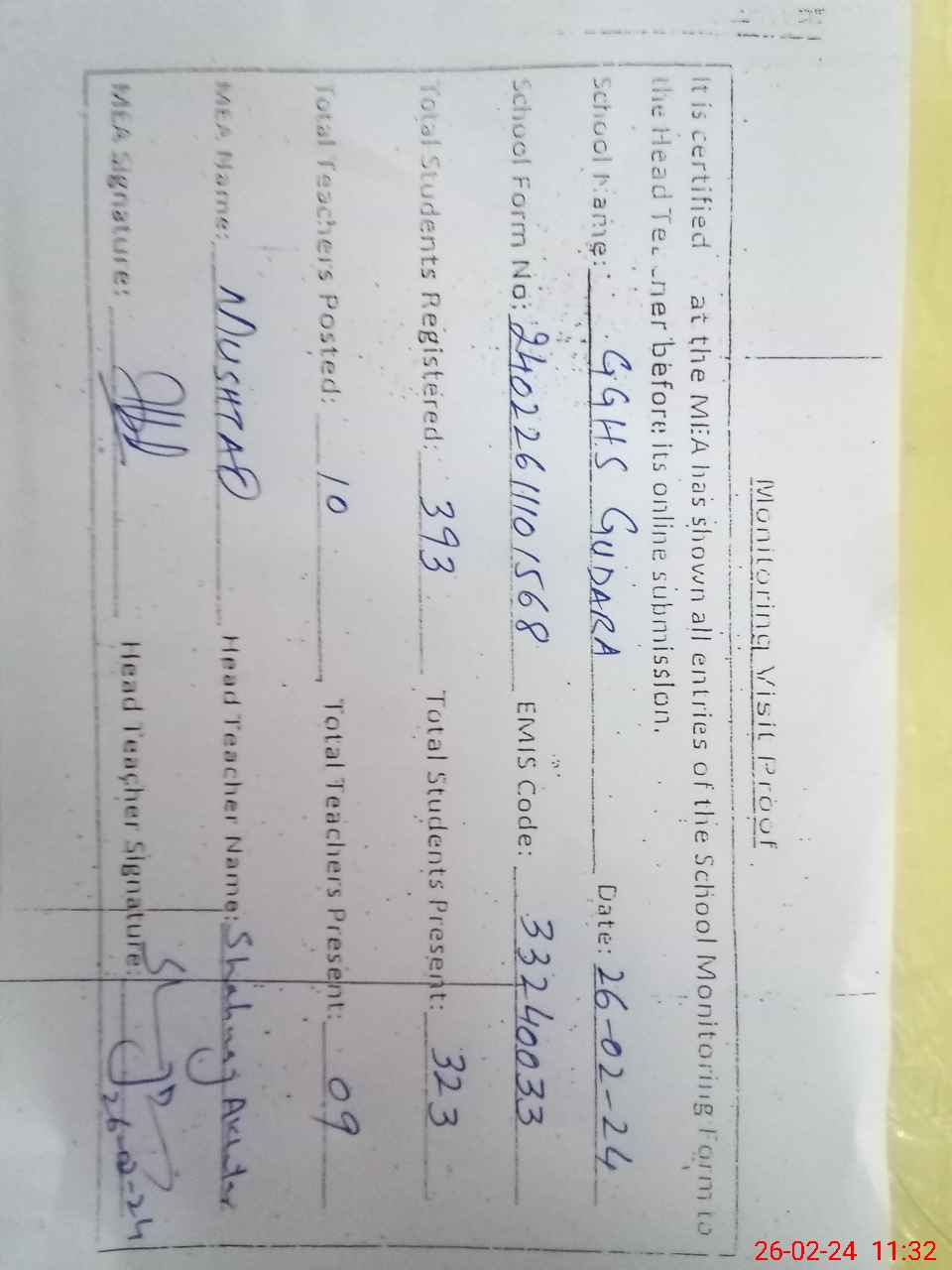 | EMIS Code: 33240033 | Name of School: GGHS GUDARA | |||