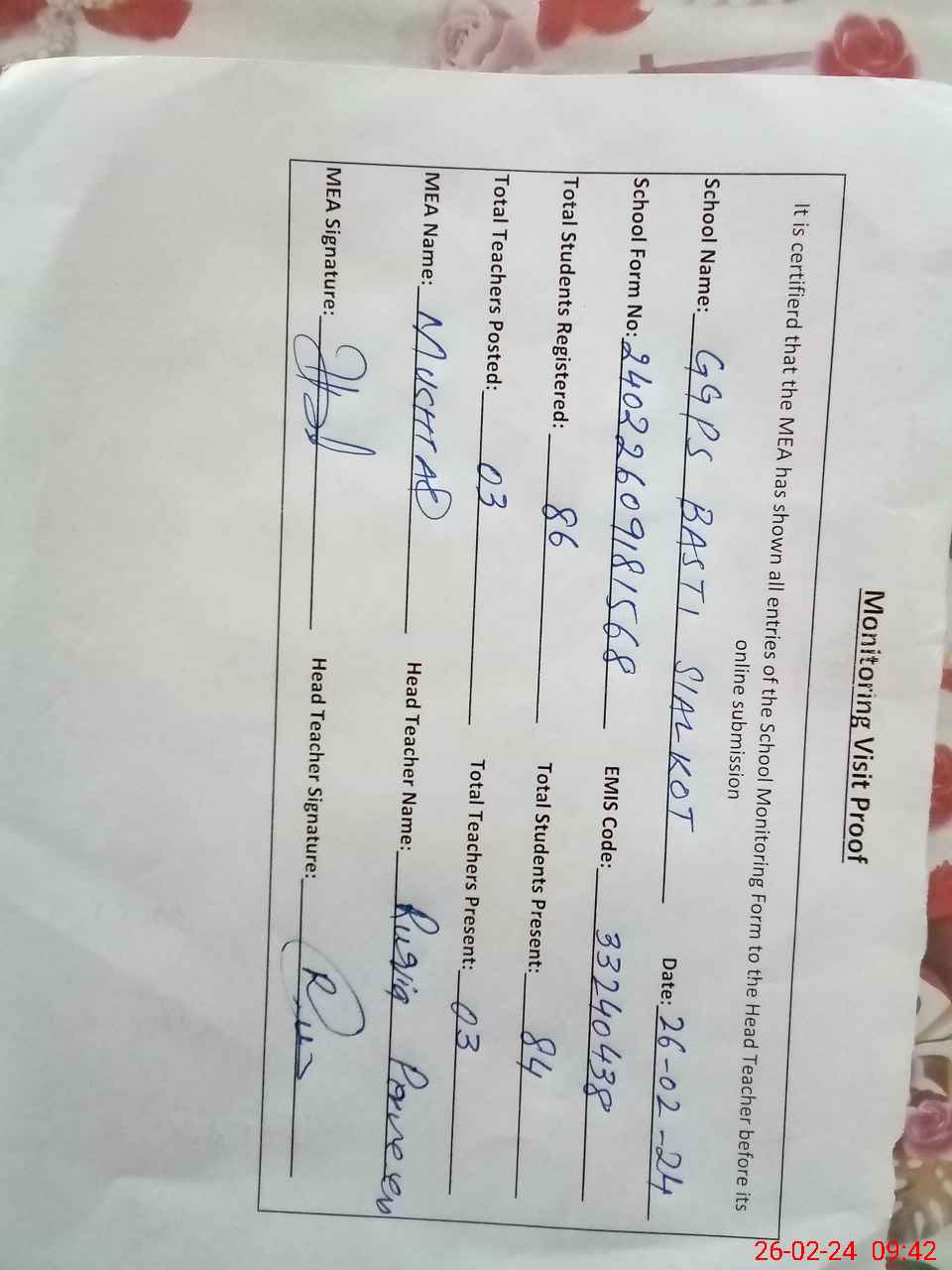 | EMIS Code: 33240438 | Name of School: GGPS BASTI SIALKOT | |||
