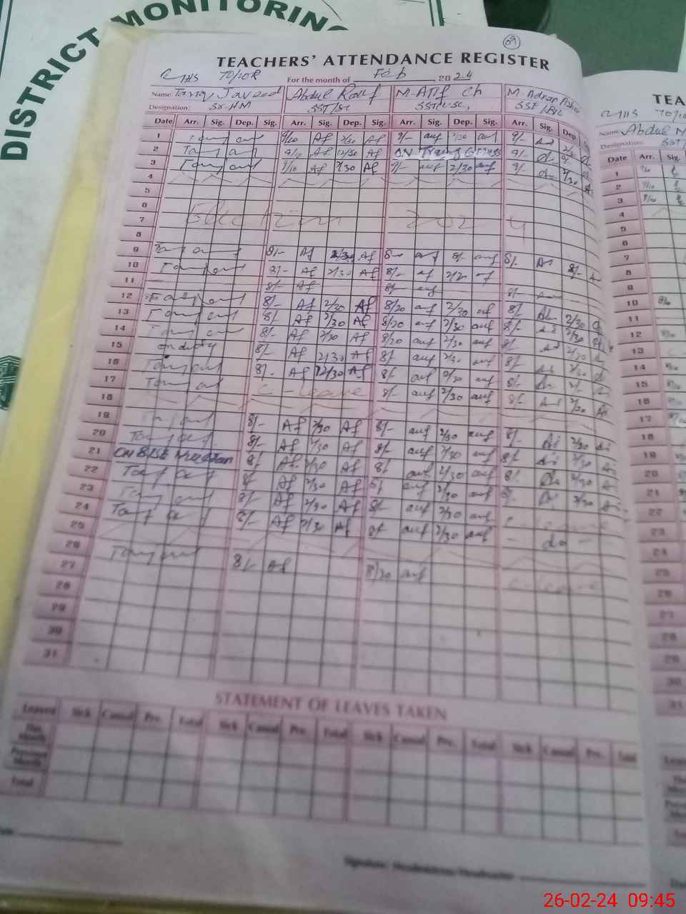 | Monitoring Date: 26-02-2024 | Start Time: 26-02-2024 09:36 AM | End Time: 26-02-2024 10:40 AM | Name of MEA: MU**** SA**** AK**** 13**** | |