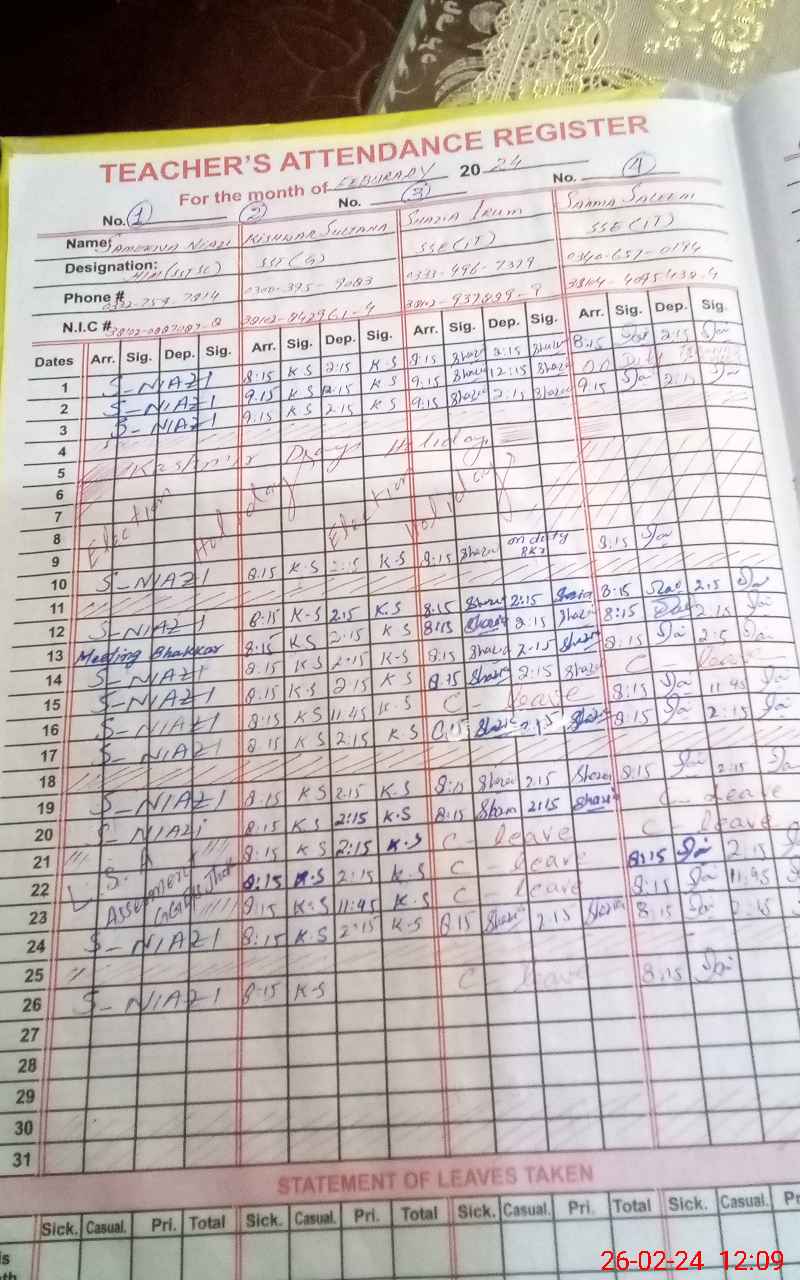 | Name: SA**** NI**** Designation: (School Headmaster's/Headmistress's) HM Phone/Cell Number: 03**** |