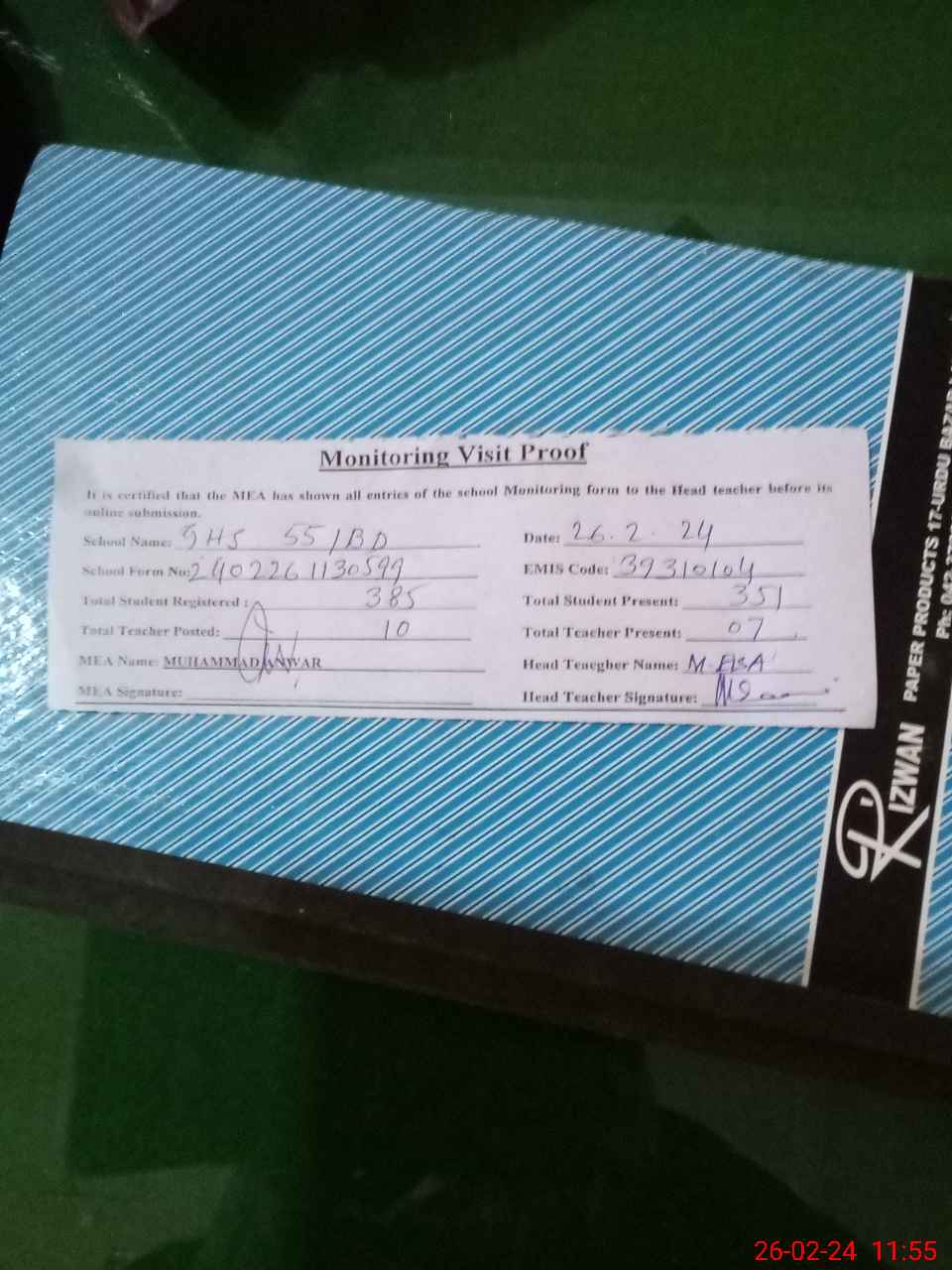 | EMIS Code: 39310104 | Name of School: GHS CHAK NO. 55/BD | |||