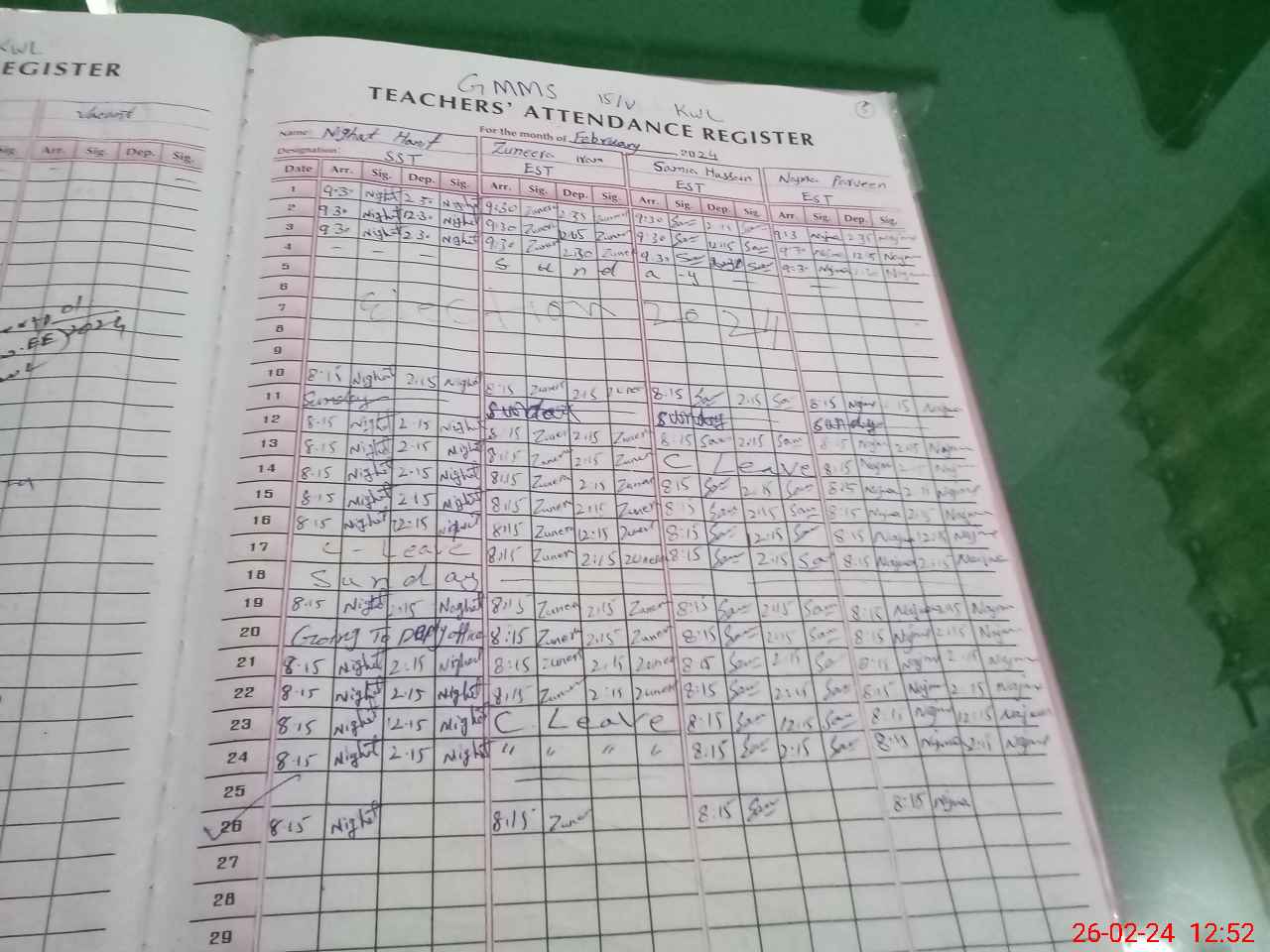 | CNIC | Full Name | Designation | R/C | Absence During Last Calender Month |