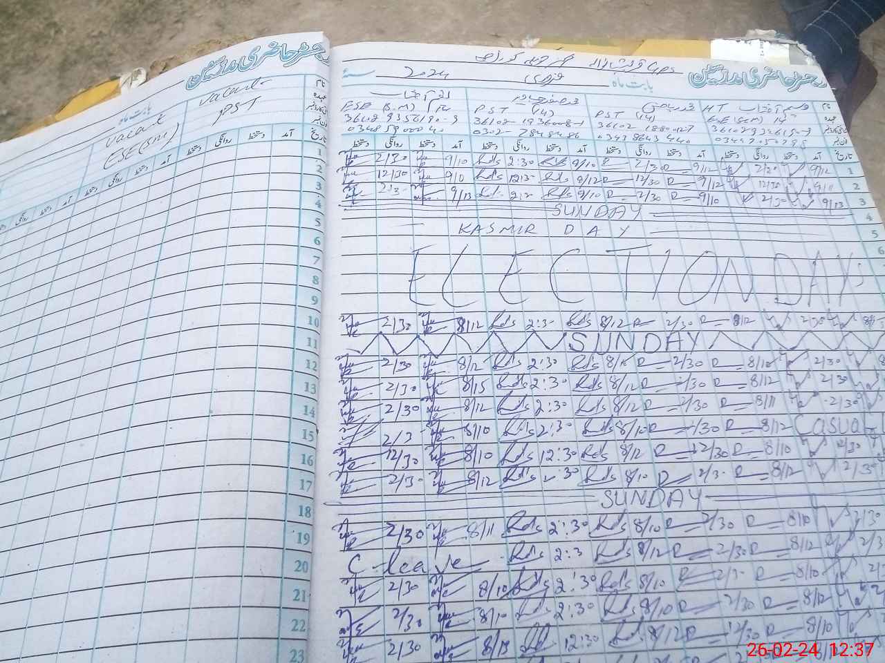 | Leave | Duty | Absent | Maternity | Medical | Ex- Pak |