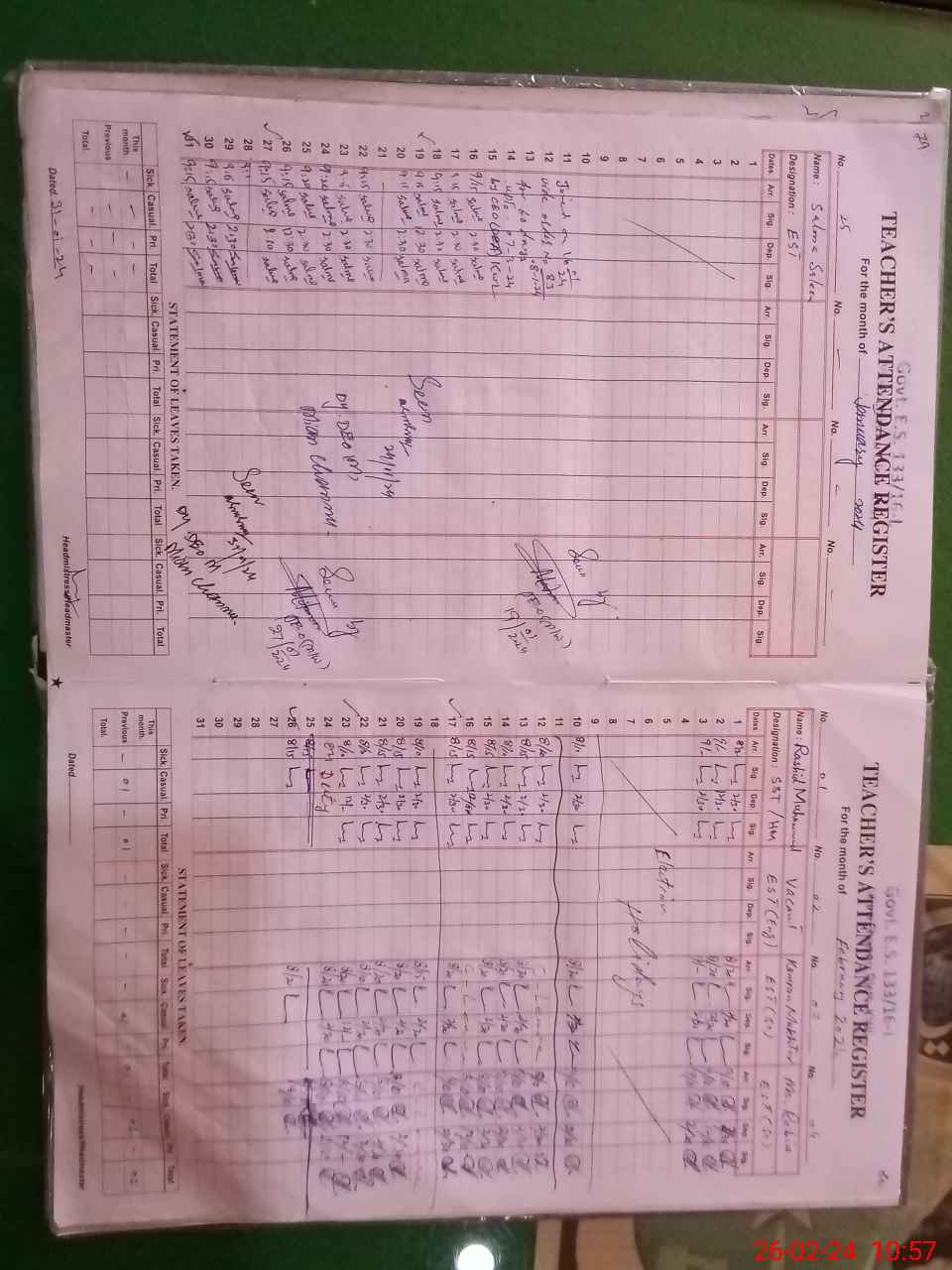| Name: AB**** ME**** Designation: (School Headmaster's/Headmistress's) EST CS Phone/Cell Number: 03**** |
