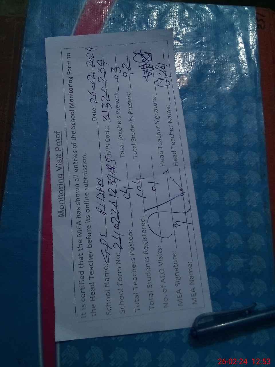 | Certified that this School was Inspected by the Undersigned MEA/DMO Today and the Information Stated Above is as Per Record. | |||||