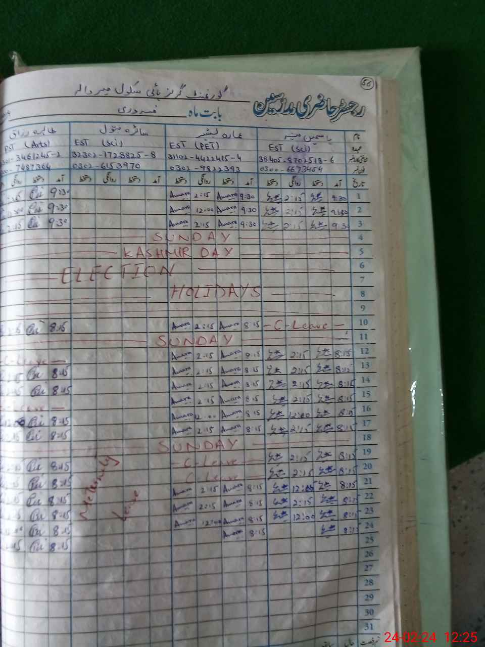 | Leave | Duty | Absent | Maternity | Medical | Ex- Pak |