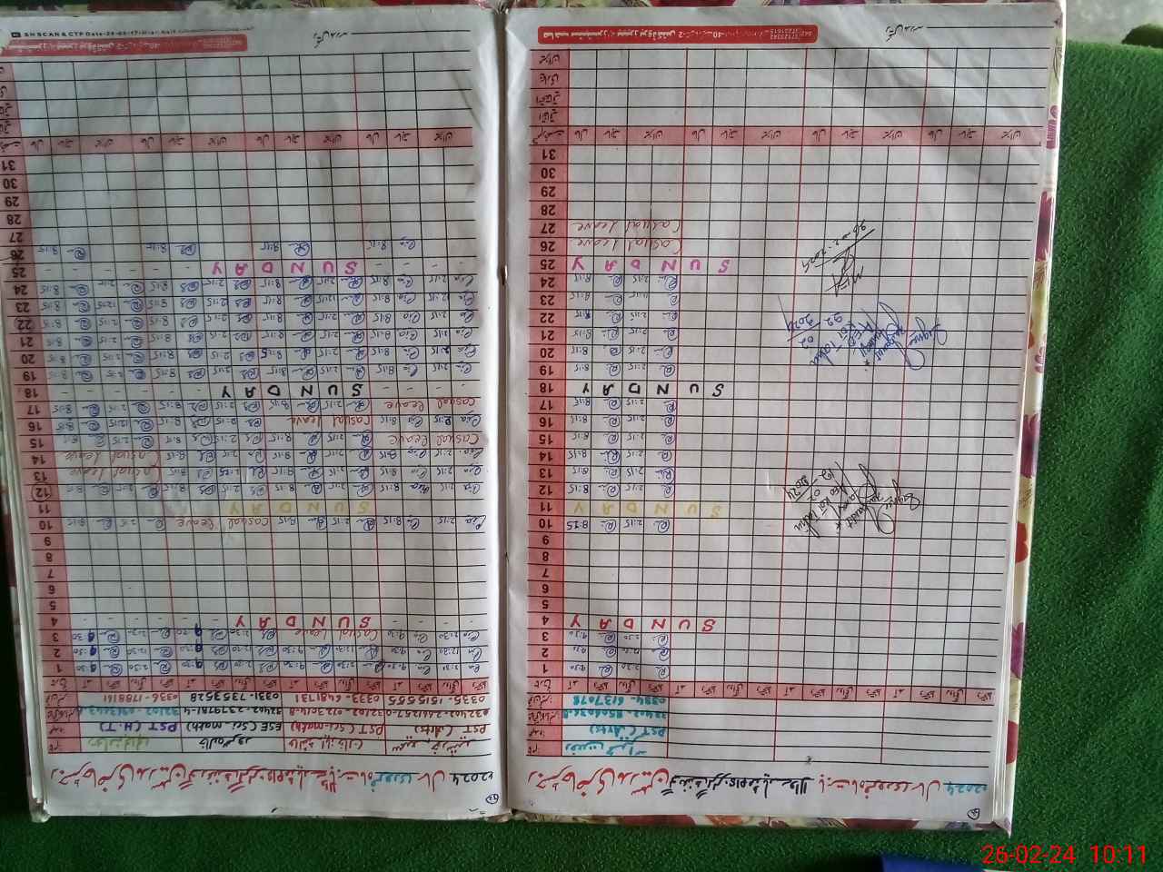 | CNIC | Full Name | Designation | R/C | Absence During Last Calender Month |