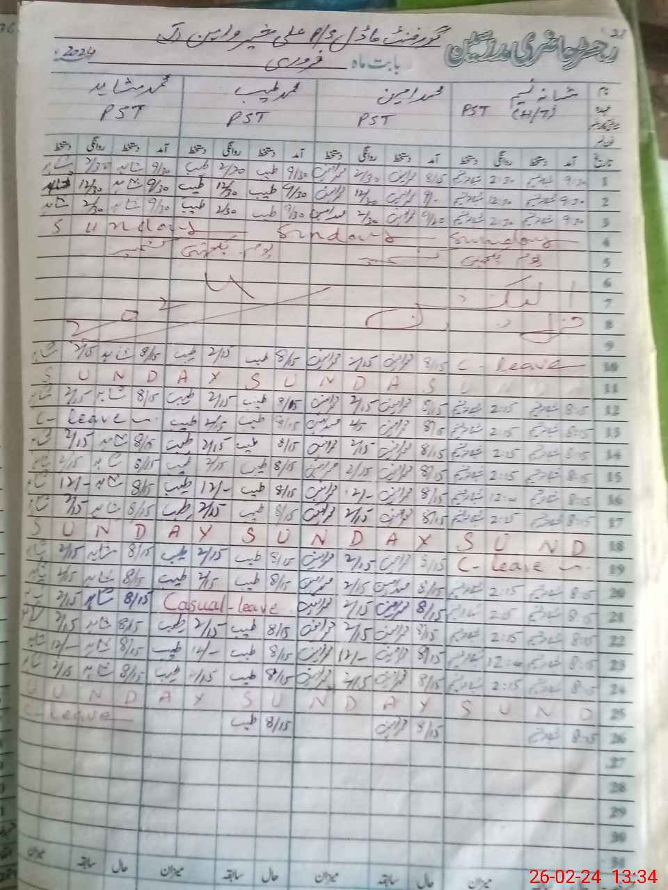 | CNIC | Full Name | Designation | R/C | Absence During Last Calender Month |