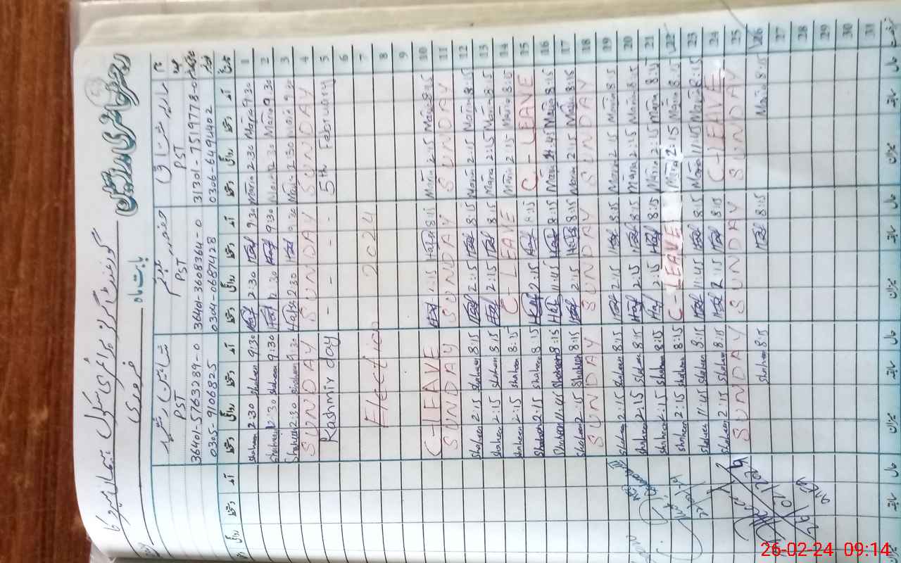 | Name: MA**** MU**** Designation: (School Headmaster's/Headmistress's) PST Phone/Cell Number: 03**** |