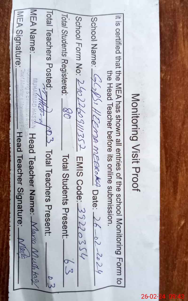 | EMIS Code: 39220354 | Name of School: GGPS HEEMAN MEHROOKA | |||