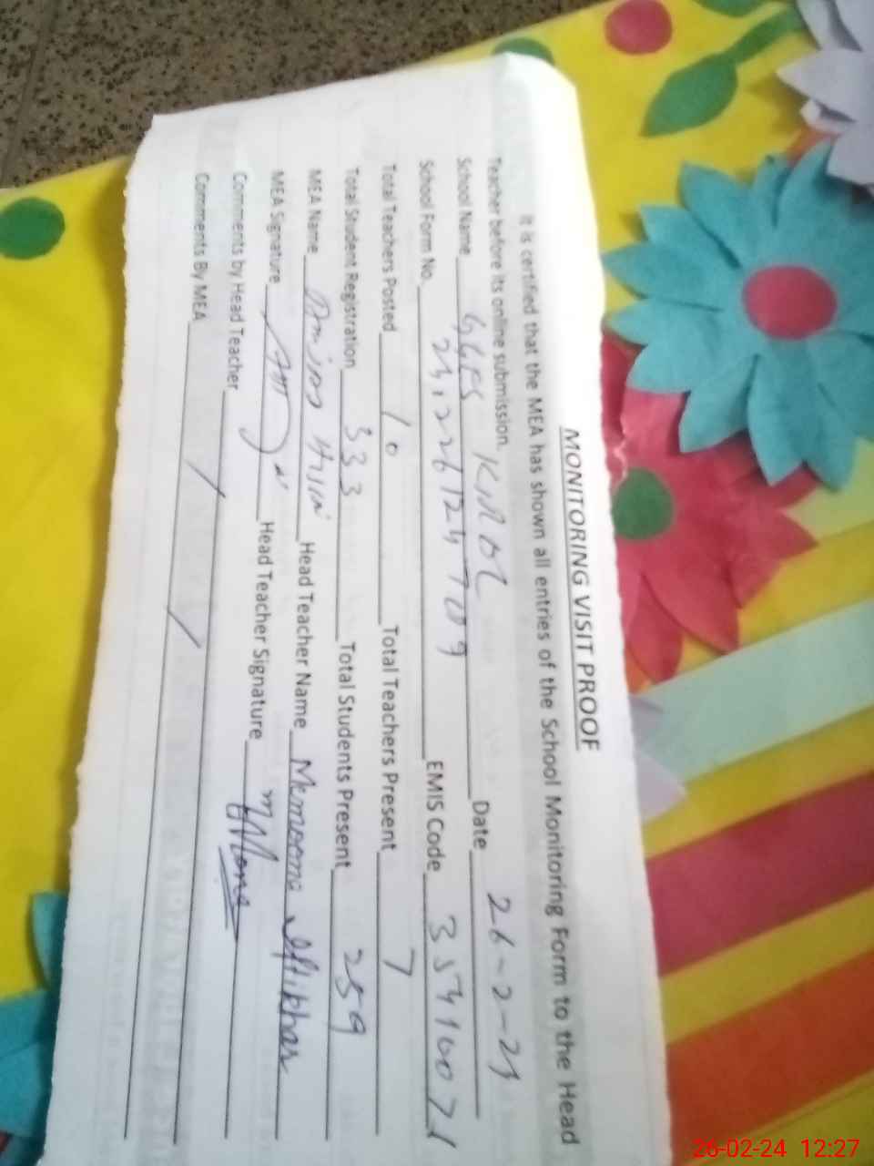| EMIS Code: 35410076 | Name of School: GGES KIROL | |||