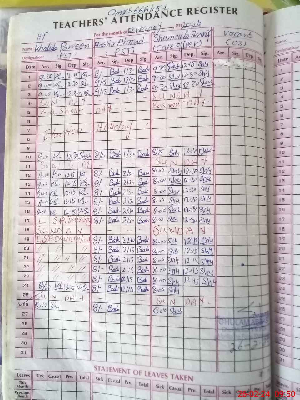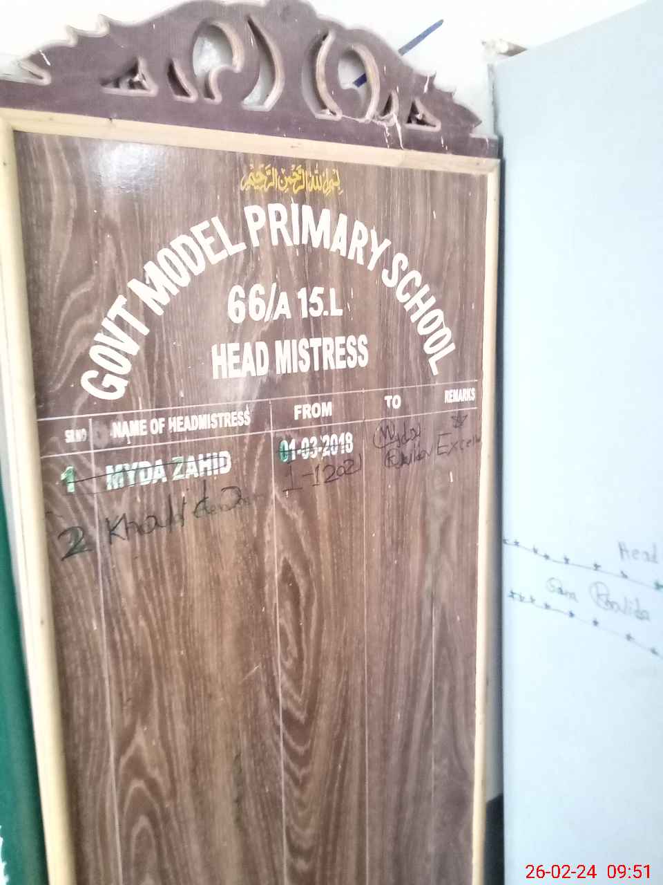 | Name: Kh**** Pa**** Designation: (School Headmaster's/Headmistress's) PST Phone/Cell Number: 03**** |