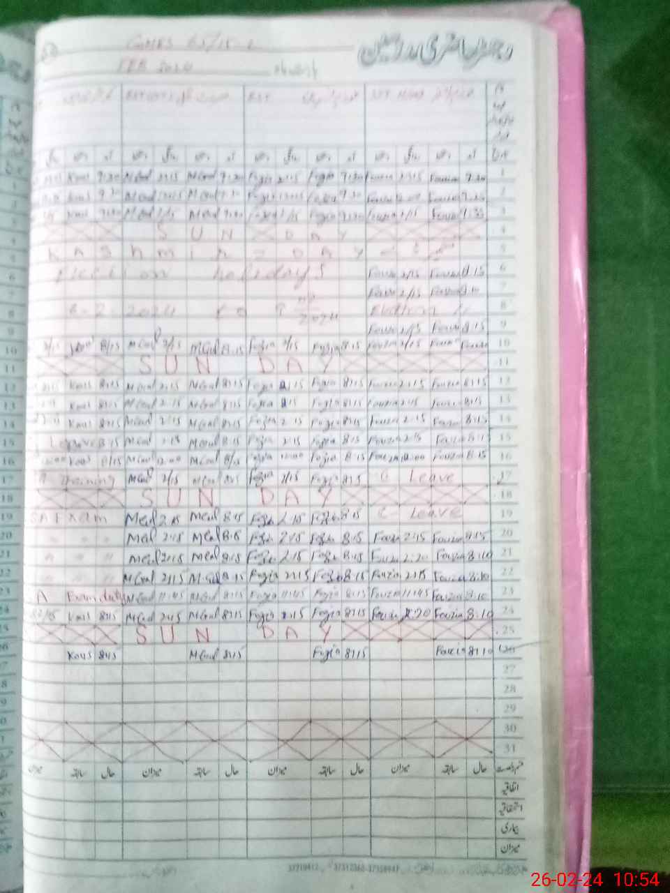 | Leave | Duty | Absent | Maternity | Medical | Ex- Pak |