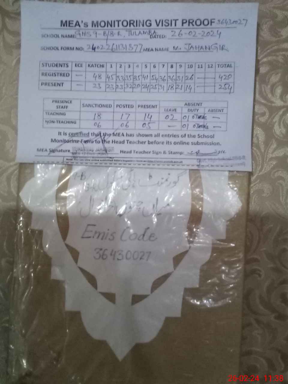 | EMIS Code: 36430027 | Name of School: GHS 9-B/8-R, TULAMBA | |||