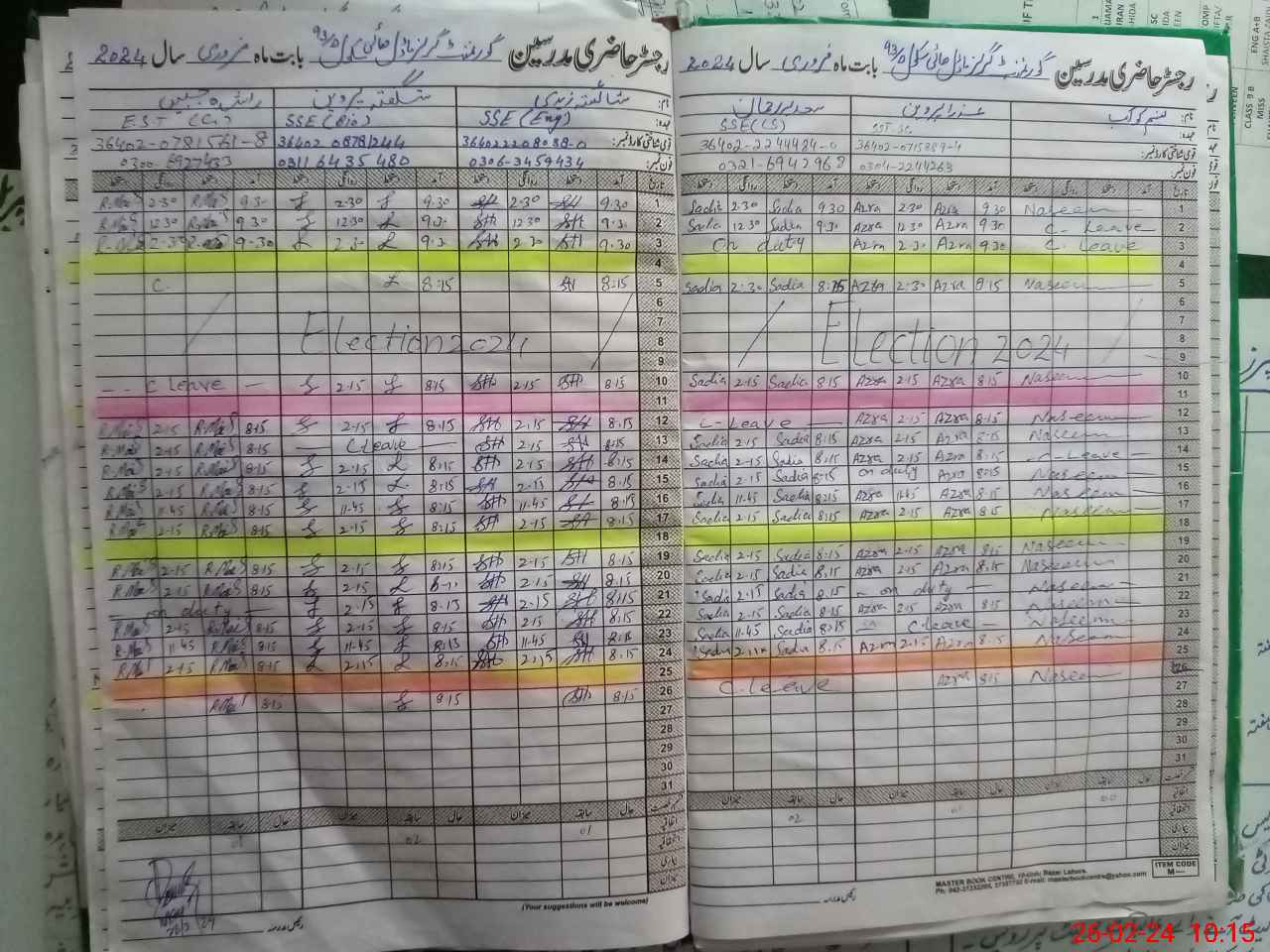 | Leave | Duty | Absent | Maternity | Medical | Ex- Pak |
