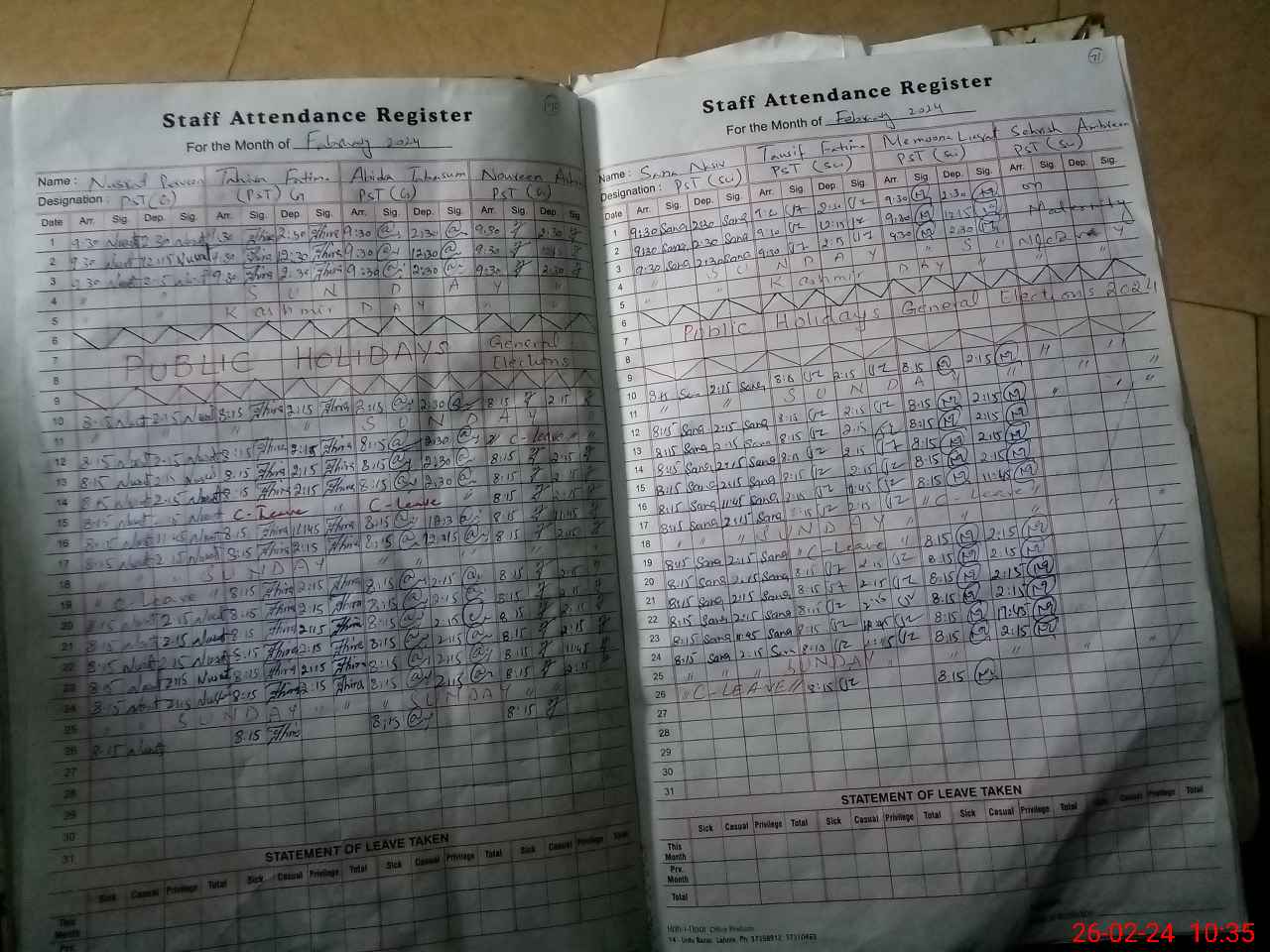 | Leave | Duty | Absent | Maternity | Medical | Ex- Pak |