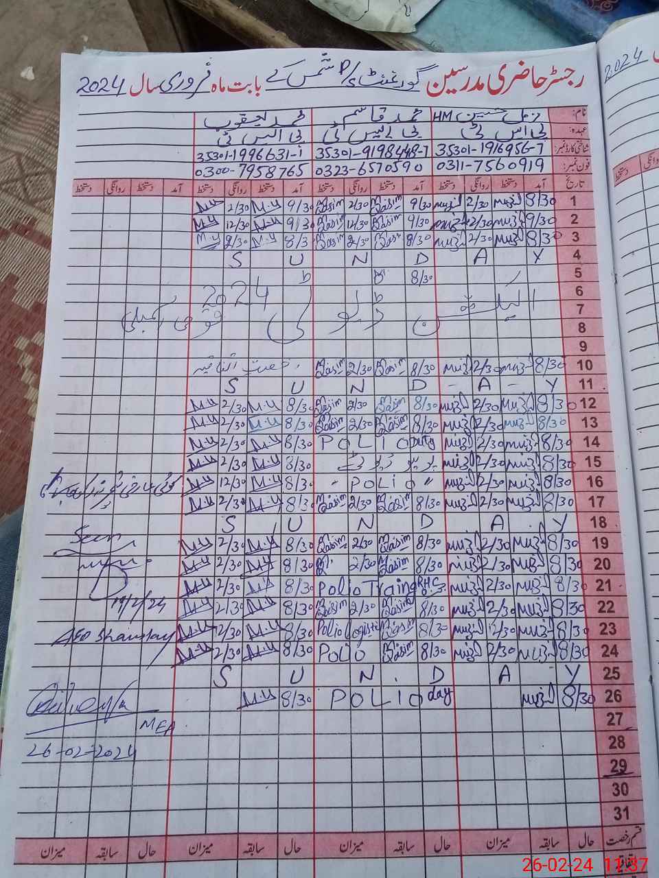 | Name: Mu**** Ah**** Designation: (School Headmaster's/Headmistress's) PST Phone/Cell Number: 03**** |
